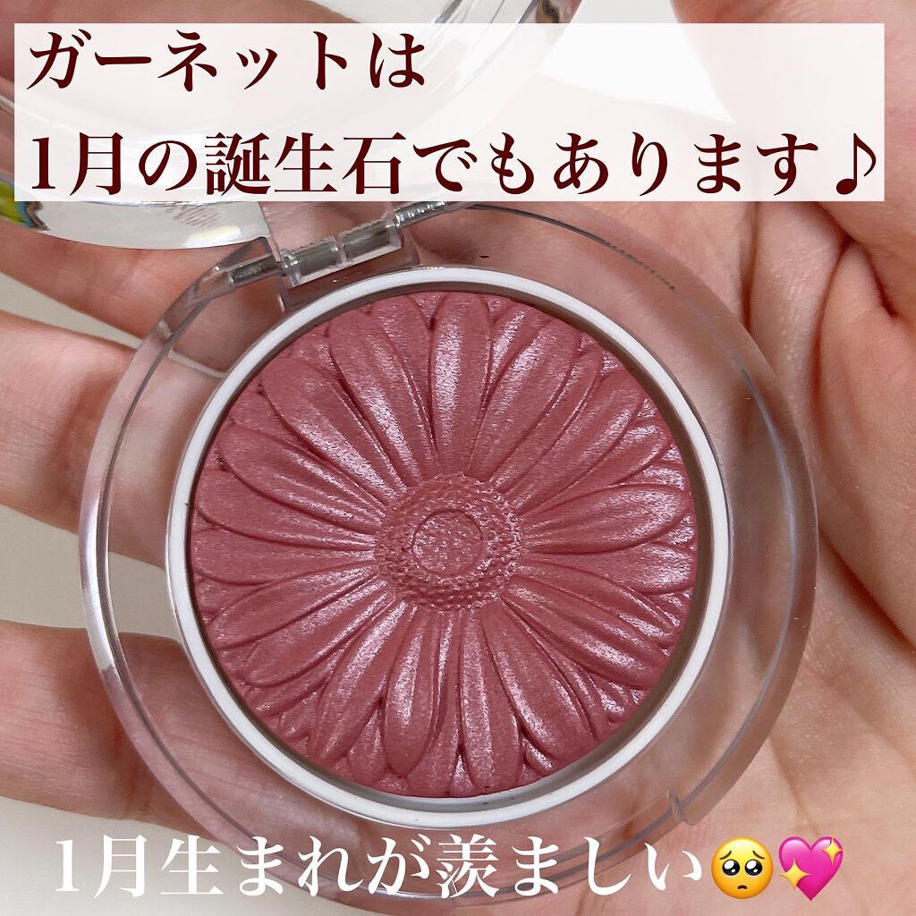 ガーネットのため見た色合いが濃く感じますが 頬にのせると青みピンクで とても可愛くブルベの方にオススメの 色合いです☆ 繊細なパールが含まれているので とても綺麗なツヤ感で肌が綺麗に また華やかに見えてとても良かったです! 色づきが程よく 綺麗に仕上げることができるので こちらのチークばかり 使用してしまいます(*^^*) クリニークはパウダーの型が とても綺麗で気分が上がります! パールタイプとてもオススメです!