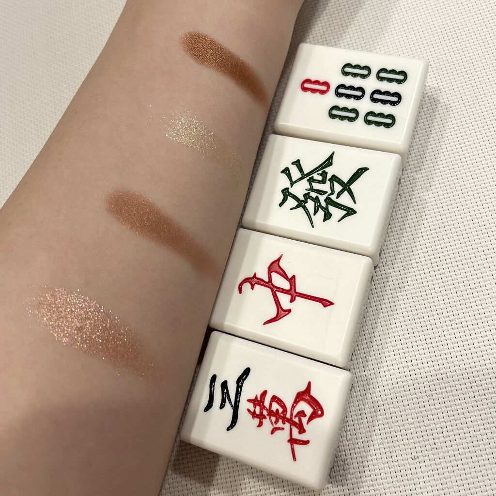 麻雀が好き!麻雀に詳しい!という事ではないのですが(笑) そそられるおもしろ可愛いパッケージ🥺♥️ 麻雀牌の形をした単色のアイシャドウになっていて、 パケだけでなくカラー、ラメ、パールもめちゃくちゃ 使いやすそうでとりあえず4つ買ってみました♥️ 全部で【43色】展開で質感もマット、シマー、 グリッター、パールと4タイプもあります💡🤍 実際に見た目だけでなく、粉の質感や発色も 優れものでめちゃくちゃ可愛い🥺♥️