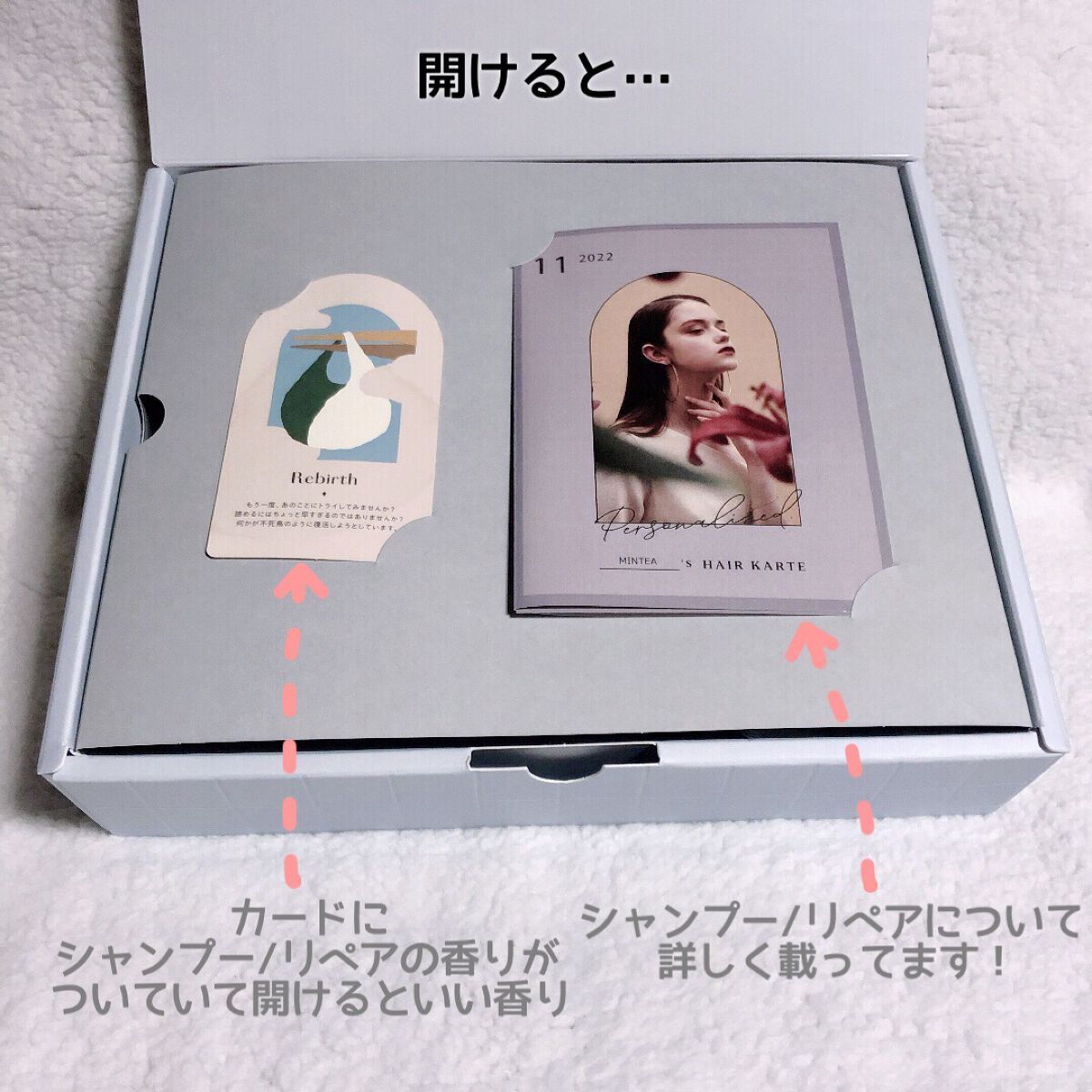 私は季節限定の香りにしました🥰 私は、ツヤと潤いとサラサラな髪の毛になりたいとわがままを言って選んでもらいました✨ 診断も手軽に出来て自分の髪の毛のダメージや頭皮の状態も選べるのでぴったりのシャンプーとリペアが届きました☺️ ドライヤー後の髪の毛はツヤツヤしてるのにサラサラの指通りでダメージケアまでしてくれて本当になりたい髪の毛に仕上がったので大満足です♡ シャンプーのボトルには名前も入っていて自分だけの特別感もあります✨ 届いた箱も可愛らしくて開けてる間からウキウキでした⑅︎◡̈︎*
