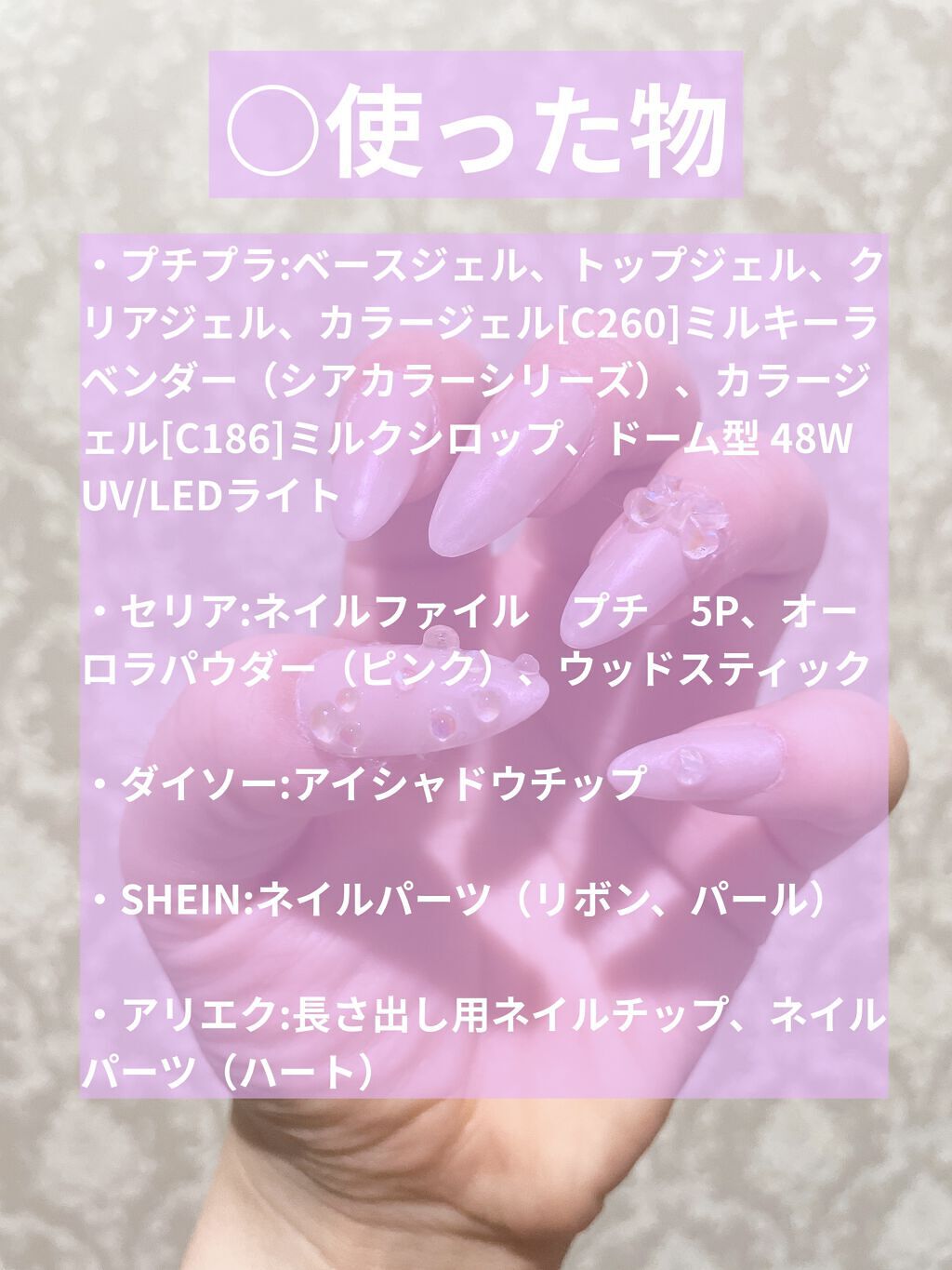 ✨おにゅーネイルの紹介✨今回はおにゅーのセルフネイルをやったので、ちょっと紹介です。前に紹介したSHEINのネイルパーツも使ってみました!やっぱり透明なパーツは可愛い♡透明感を意識してやってみました。ネイルチップで長さ出しは、初めてでしたが、めっちゃ楽w参考になれば、幸いです🙇♀️#SHEIN#ネイルパーツ#プチプラ#クリアジェル#C-186#ミルクシロップ#セルフネイルね#ジェルネイル#ネイルチップ