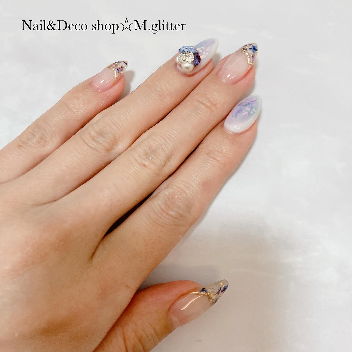 マイネイル✨紫陽花ネイル❣️ビジューも紫陽花カラー✨💅🏻M.glitterネイル▶︎▷▶︎@m.glitter_nail💎Decoshopはコチラ▶︎▷▶︎@m.glitter2021オーダー、お問い合わせお気軽にどうぞ♡クリックポストで送れ...