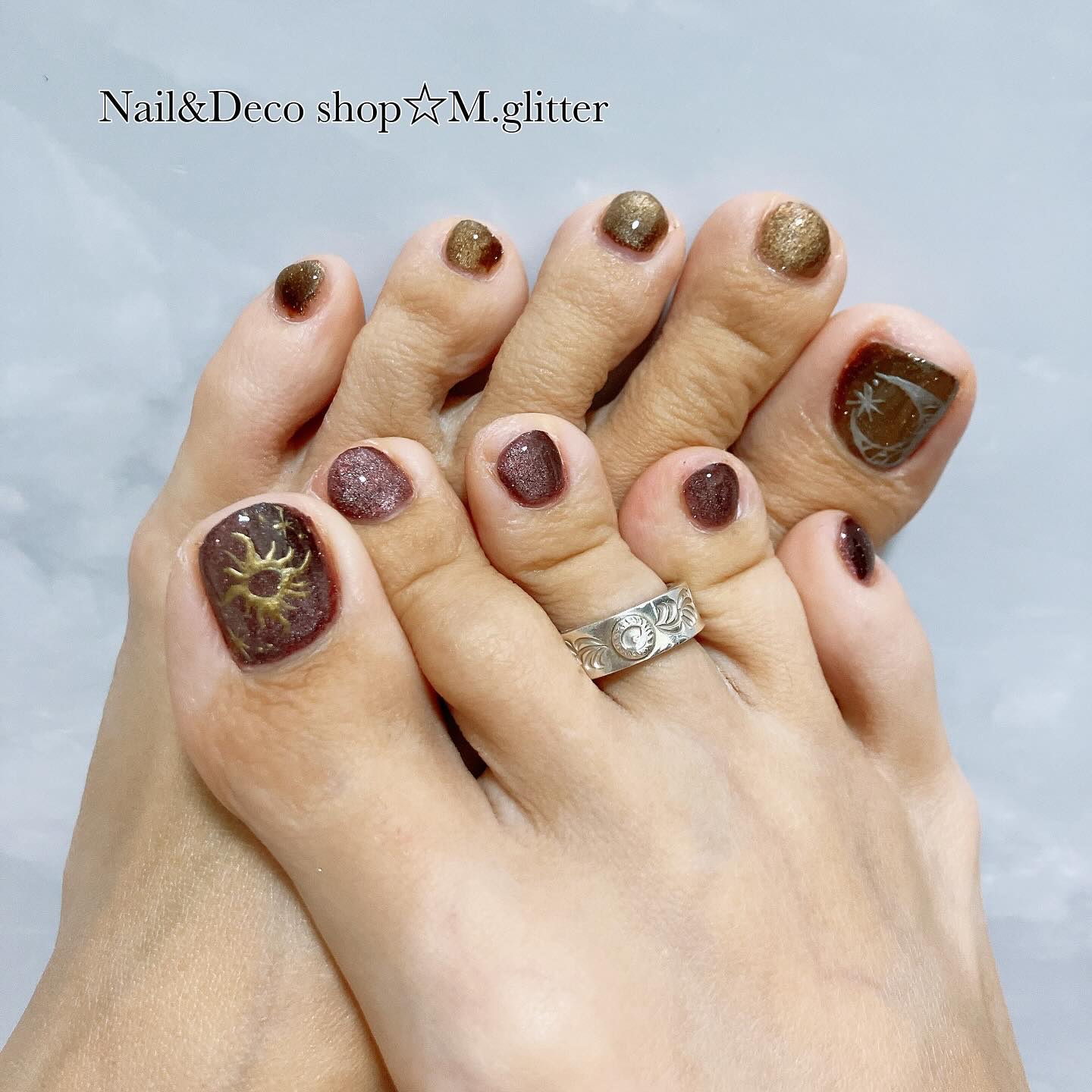 マイネイル💅🏻✨太陽と月のカラーのフラッシュマグネット🩷デザインもそれっぽく...🌞🌛メタリックジェルの手書き頑張った!!フットもお揃いにしてます❣️💅🏻M.glitterネイル▶︎▷▶︎@m.glitter_nail💎Decoshopはコチラ▶︎▷▶︎@m.glitter2021オーダー、お問い合わせお気軽にどうぞ♡クリックポストで送れるものは送料無料で発送しています☆お支払い方法選べます✨BASE、メルカリ、メルカリshops直接購入も可能です!(手数料分お安くなります)#mglitterネイル#あいりネイルカタログ#newnail#秋ネイル#秋ネイル2024#マグネットネイル#フラッシュネイル#太陽と月#曼荼羅#曼荼羅ネイル#惑星ネイル
