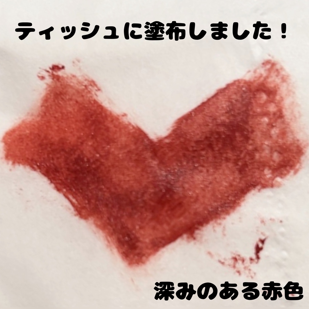 ただ、発色は凄く良いし、マット加減(質感)も良いです☺️ なにより色味が可愛い!!!! ちゃんとブラウンを感じる赤リップで、これだけでオシャレなリップが出来ます。 グラデリップを作るなら、唇中央に乗せた後、綿棒でリップラインまで丁寧にボカすのが1番綺麗に塗れました✨ それか、いっそのことベタ塗りでパキッと発色させても綺麗なリップが出来ました。(最後にティッシュオフを忘れずに) 歯紅せずにめっちゃ色持ちさせたいなら、最後の仕上げに無色のパウダーをブラシか指で乗せるのがオススメ👌✨ この使い方をするようになってから気に入ってよく使っています💕