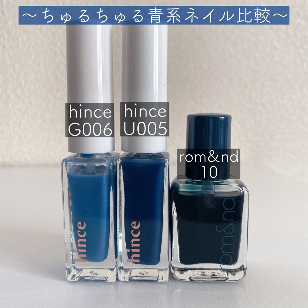hinceグロウアップネイルカラー[U005]ギブ・ア・デェアQoo10公式にて1本1375円こういうブルーカラーずっと欲しかった😭💙持っている透け感のあるちゅるちゅる系ブルーネイルと比較してみてますがhinceG006→スカイブルーくらいの...