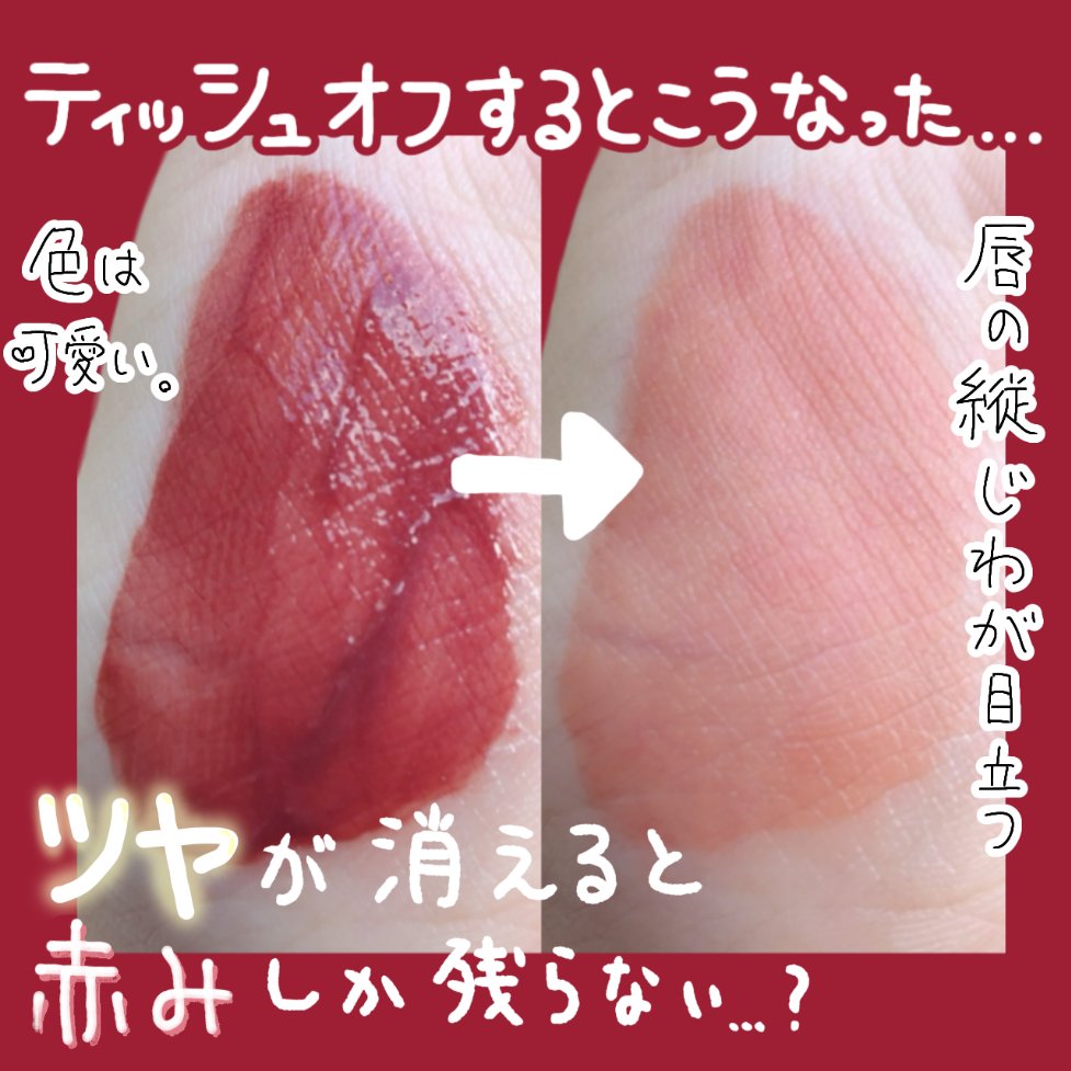 ごめんなさいっっ辛口評価かも🌶️💦--------------------------☞良き良きなポイント色味はめっちゃ可愛いです!ほんとに可愛い!深めレッドブラウンみたいな🤎ぷるっとした見た目の仕上がりですꔛ♡*𐙚☞イマイチだったポイント落ち方がちょっと汚く感じてしまった…“ティントリップ”につられて信じきっちゃったのもあるけど、これをまあまあ大事な日に使ったからかなりダメージ受けました☠笑笑食べ歩きしてる唇には耐えれなかったようです🥲︎なんか、絶妙にポロポロみたいなのが残留してるみたいな落ち方でした。色味はほぼ残ってないから、食べカスみたいになった🌀落ちるなら全部落ちてくれーーーあとは、液体がさらさら系((?だからか縦線が目立つというか、縁が際立つというか。私は綺麗に塗るのが難しかったです💧リピは…しないかなぁ…ちょっと残念でしたඉ_ඉ--------------------------参考になったら嬉しいです♡上手に使う方法知ってる方はぜひコメントで教えてください(切望)#CEZANNE#セザンヌ#ウォータリーティントリップ#リップ#ティントリップ#ビターレッド#深みリップに恋する季節