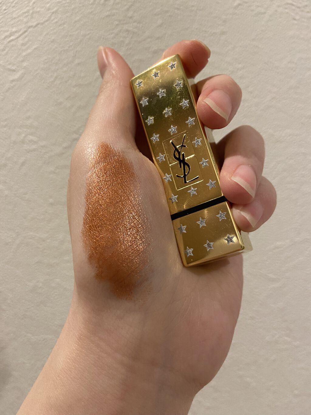 【買って良かった‼️求めてたメタリックな輝き🌟】🌟MAKEUPFOREVERルージュアーティストメタリック001イグゾービタントゴールド(左)002ヒプノティックラスト(右)クリスマスコフレ調べてたらめっちゃ可愛いリップを見つけてしまった🥺NARS買ってコフレはこれだけか?とか言ってたのに全然買いました(笑)見た目がもうドンピシャのメタリック+ラメラメなリップ‼️✨昔、イヴ・サンローランのクリスマスコフレでメタリックなオレンジのリップ買って(写真5〜6枚目)それがめっちゃ可愛くて、それからメタリックなリップに目がない🥰🥰🥰この星の刻印可愛すぎる🥺🥺🥺❤️(あんまり求めてるメタリック感が強めなリップに出会えてないけど笑)これは、まじでヒット❤️🔥❤️🔥❤️🔥❤️🔥❤️🔥新宿の伊勢丹は先行発売してたからか5分の3は売り切れてて、新宿のルミネ2の方にも店舗あって、そこは2本だけ売り切れてて欲しい色はありました👏全色欲しいくらい煌めきに感動した🌟これぞクリスマスコフレ🎄だな🌟っていう主役感強めなキラッキラのリップ‼️メイクアップフォーエバー攻めてるわ‼️‼️全然繊細じゃない(言い方w)いや、控えめじゃない大胆なラメ感🌟吹き付けじゃなく、中までキラキラらしい🤩敷き詰められたようなラメが最高。あとこんなギラギラなのに、ザラザラしないのがビックリ😳😳😳付け心地はスルスルで、発色良くて最高ー‼️ラメは一生取れないんじゃないかってくらいしっかり付いてくれる😂👏✨だいぶラメ感すごいので、直塗りするより指で取ってポンポン塗りの方が普段は使いやすいと思います🙆♀️💕左の色は薄めのブラウンというかゴールドというか。単品も可愛いけど重ねても可愛い👌❤️右の赤は同じくゴールドラメ🌟めっちゃギラギラで、普段使いには向いてないから(笑)ポンポン塗りくらいが程よい華やかさで良いと思う🙆♀️💕これを指で取って、アイシャドウに塗るのもアリってBAさんに教えてもらった☺️メイクアップフォーエバーってスターリーパウダーとかもそうだけどネイルに使えたり、リップのラメがアイシャドウに使えたり、普段使いする側からしたら応用できるのはお得感あって良い🥰やっぱり好きだわ、メイクアップフォーエバー…✨
