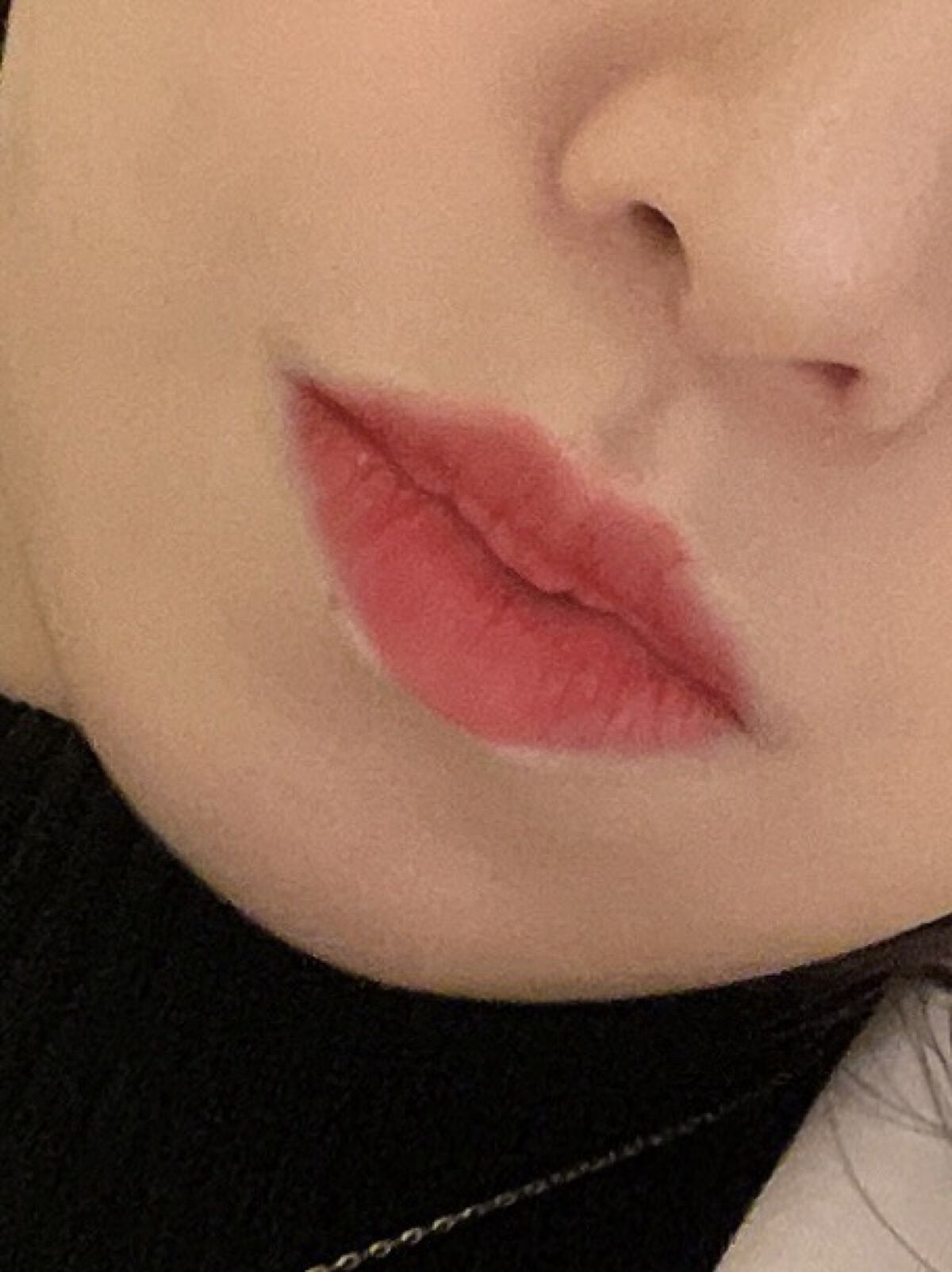こちらはベタ付けするとかなり濃いので、中央に少し付けてから指で唇全体に伸ばして使っています。 乾かないうちに唇を合わせるとムラになりやすかったです。最初にささっと伸ばしてからは触らない方がいいです。 乾いた後は色もちも良かったです。マスクにも付きにくかったので安心でした🥹 ティントではないので、唇に色が定着して落ちないということもなかったです。