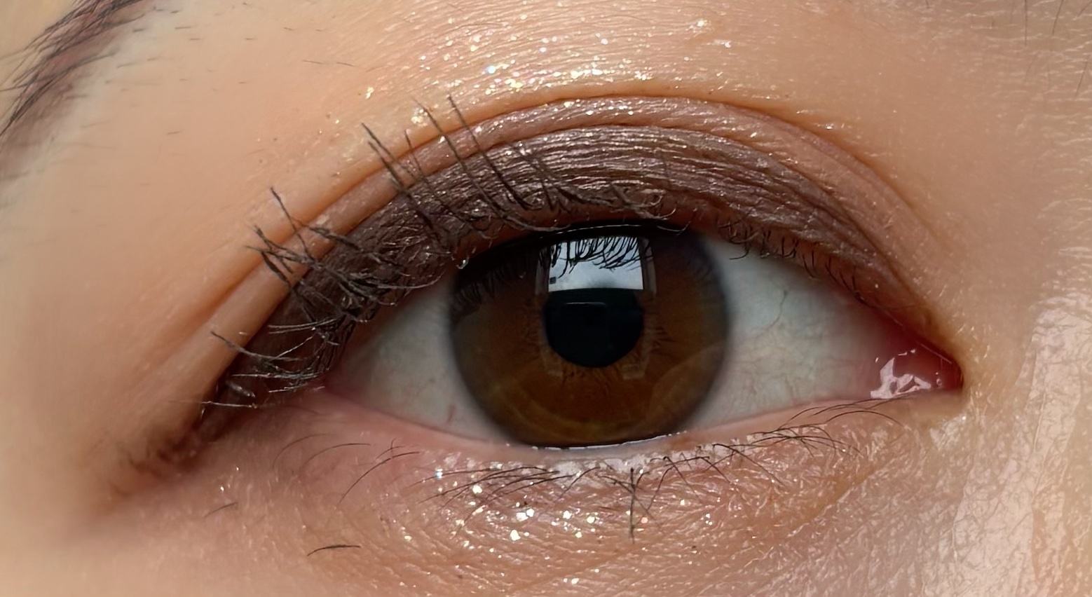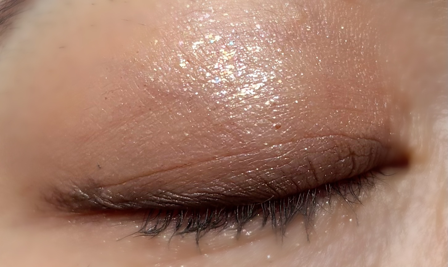 - 肌なじみの良いヌードカラー&ジュエルグリッターシャドウとミュートトーンのヌーディーカラーリップの組み合わせ