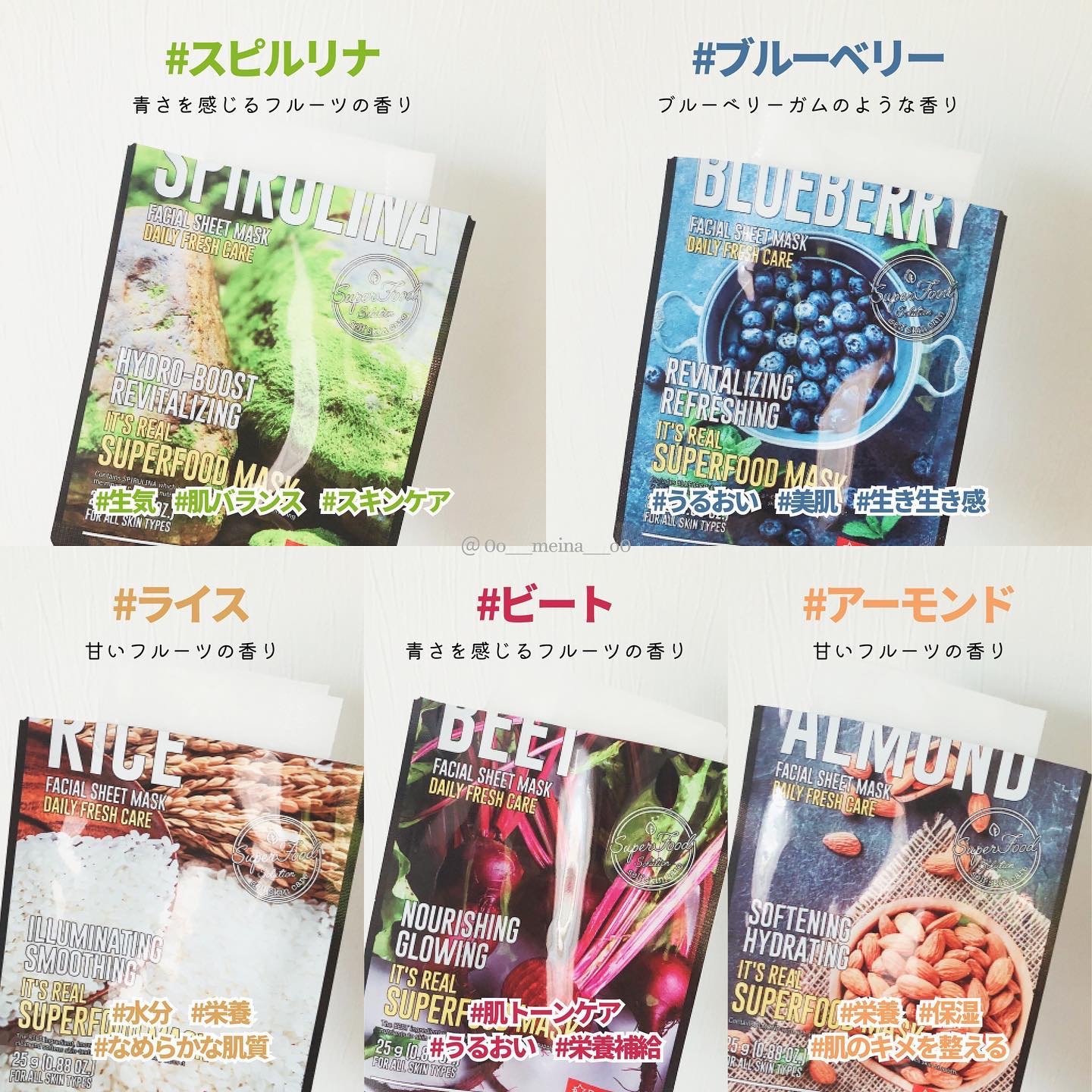 フレンチテイストの可愛い韓国コスメを提案するポパパリ💗世界で注目を浴びているスーパーフード!スーパーフードの栄養をたっぷり含んだフェイシャルマスクです。厳選された14種類のスーパーフードのマスクのなかから3種類使ってみました。アーモンド...