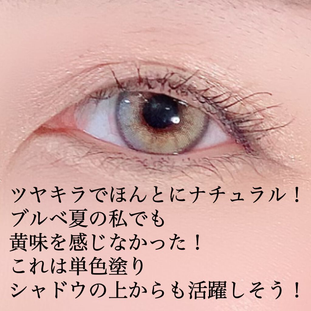 上品なラメで薄めのベージュだからアイシャドウの下に仕込んだり涙袋につけたりどのアイシャドウ使う時でも万能に使える🥰 クリームタイプだから粉飛びもしないし使いやすい! パーソナルカラーも問わない色味だと思う☺️🌼