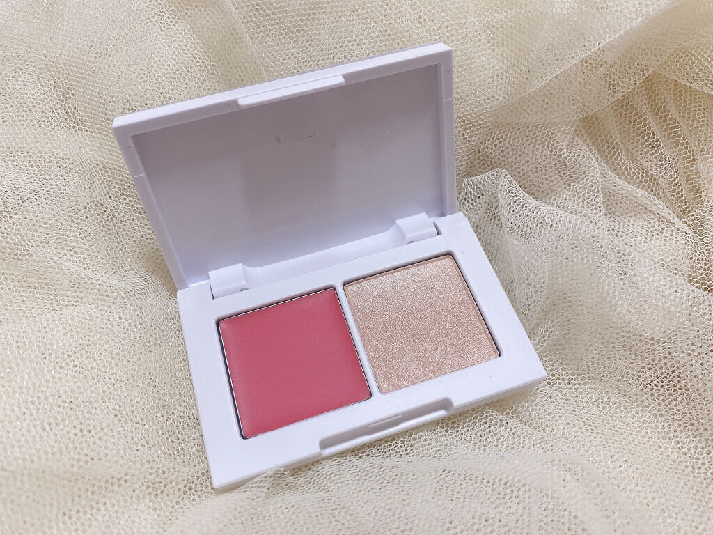 サラサラとした手触りのサテンポーチ 見た目も可愛く、使いやすいサイズ! 筆記体のロゴが可愛い💕 淡いレッドのバームと 結構白っぽいハイライトカラーが セットされたパレット🎨 バームは結構しっとりしてて 色もそこまで強くは出ませんでした。 ハイライトは光の色に結構強く左右されます。 ラメではなく、わりと面で光る感じです。 ローズ系のボディーソープっぽい香り🥀 最初ローズが強くて、だんだんと ボディーソープっぽさが強くなります。 はじめの香りは なんかちょっと懐かしい香りです。 絶対嗅いだことあるんだけど思い出せない… 香りはそこまで長続きはしなくて 持続時間は1〜2時間かなと思います! 特にローズの香りは30分持たないです。 ローズが消えたくらいの香りの方が 個人的には好みだったのでありがたい。 後半のボディーソープっぽい香りは かなり番人受けかなと感じました。 またバームなのですごく強くは香りにくくて 食事とかに行っても 人の邪魔にはなりにくそうでいいなと 思いました!