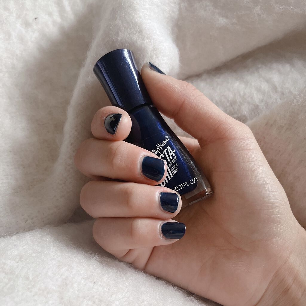 全米No.1の"60秒ネイル"が日本初上陸🗾🇯🇵✨...✰⋆。:゚・*☽:゚・⋆。✰⋆。:゚・*☽:゚・⋆。✰⋆。:゚・*☽サリーハンセン/SallyHansen⭐︎インスタドライネイルカラー493ミッドナイトドライヴ⭐︎インスタドライチップレジスタントトップコート✰⋆。:゚・*☽:゚・⋆。✰⋆。:゚・*☽:゚・⋆。✰⋆。:゚・*☽...12月上旬に全米No.1ネイルが日本初上陸しました〜🇯🇵✨👏👏👏👏👏...この商品が発売する前から、美容家さんのお友達@wcattails.0425[Instagram]@ririy_0505[LIPS]さんから、既に情報を聞いてて☜さすが美容家はレベチ✨楽しみに待ってました〜♪..今は"ロフト・東急ハンズ"などバラエティショップで販売されています💛💚...ではではさっそく〜✨【商品紹介】60年の歴史を誇るネイルブランド💅『SallyHansen』メニューもルールもいらない。いつもサロン仕上がり。⭐︎速乾性全米No.1たったの60秒⭐︎1本3役!サロン級“インスタドライネイルカラー”はベース&トップコートの成分入り!⭐︎豊富なバリエーションの全16色展開です!※Instagram日本公式サイトのを引用してます。...ここ最近、ブラックやネイビーといったダークカラー🖤にハマっていたので、16色ある中から"ネイビー"をGETしてきました💙.本当はブラックも欲しかったのですが、私が友達と買い物しに行ったときにロフト・東急ハンズではほぼ完売状態でした…🥲..残念。再入荷した際は、ブラックやベージュ・ブラウンなど大人っぽいカラーをGETしにいく予定です♡...【塗心地】とってもスムーズに塗りやすい✨なぜなら、筆が太めでしっかりコシのある感じだったんです!!液がしっかり絡めとってくれるため、ひと塗りでササっと塗れました!..乾くのも本当早すぎて、ズボラな私でもラクチンに塗ることができました✨.それに毎日忙しい方でもピッタリなネイルだと思いました♡..お値段も1000円越えしません!なんと1本¥715(税込)✨お手頃で素敵ですよね!..インスタドライネイルカラー単体でもトップコートの役割があるので、しっかりツヤもありました!更に強化する為に私はプラスで、インスタドライチップレジスタントトップコートを上から塗ります!..コレも速乾性抜群60秒です⭐️.このトップコートの筆は太くもなく細くもなくどこにでもあるネイルの筆の太さと同じ感じに見えました。.このトップコートを買うなら、サリーハンセンのネイルの中でも1番高い"7in1ネイルトリートメント"が気になります⭐️..サリーハンセン一押しケアアイテムらしく、"7つのニーズの為のオールインワントリートメント。"らしいです♪..詳しくは@SALLYHANSEN_JP[Instagram]に載ってます!見てみてください☆..ジェルネイルしたいけど、職場環境的に出来ない・学校の規則で出来ない・忙しくて余裕がない。..だけどおしゃれしたい皆さん!ぜひ、サリーハンセンのネイルを使ってみてください❣️おススメです⭐️..※コレは全て私個人の感想です。...#サリーハンセン#SallyHansen#インスタドライネイルカラー#インスタドライチップレジスタントトップコート#ネイル#セルフネイル#単色ネイル