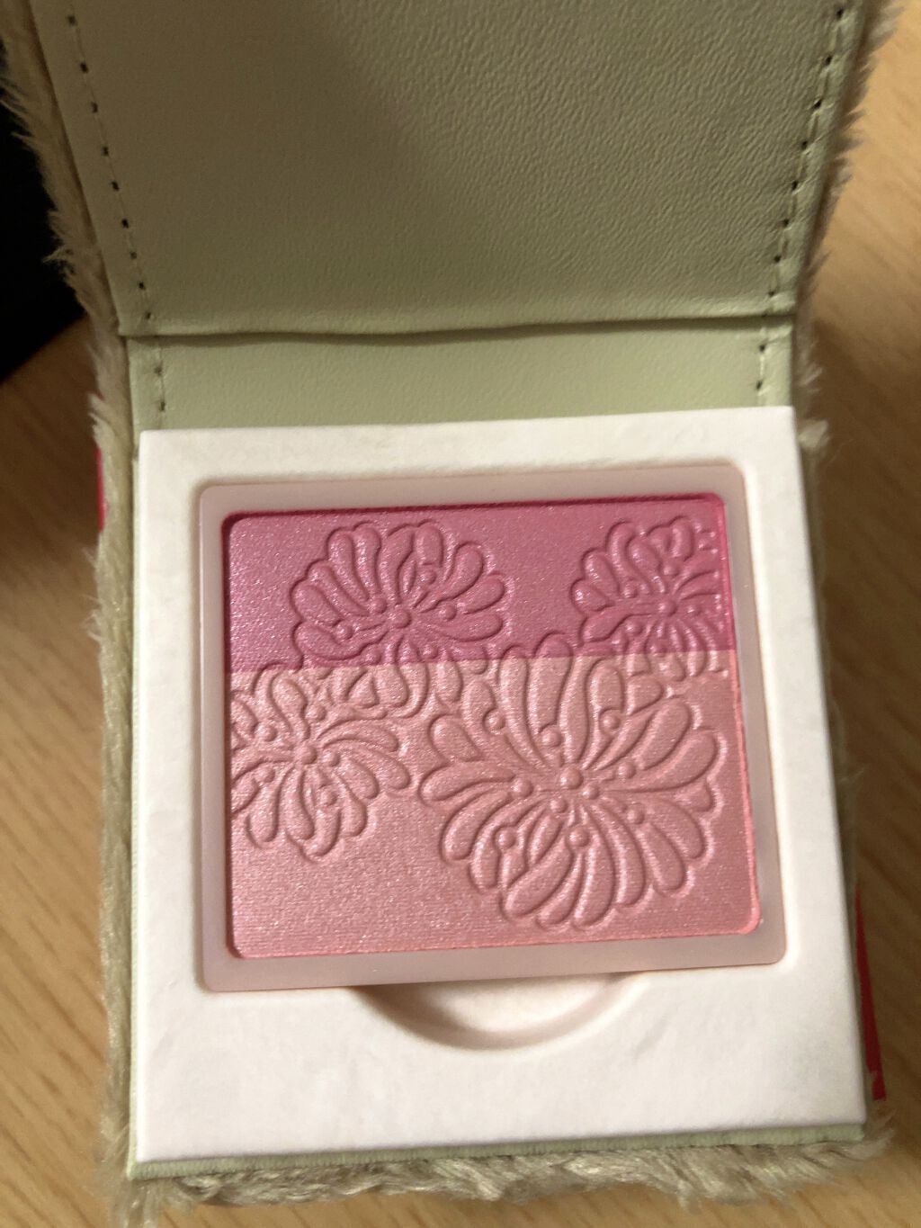 ネコ好きにはたまらんモフモフのパケの可愛さ♡ チークは、別のブランドを購入しようと思っていたけど買わずにはいられなかった… 私には珍しいピンク😂 マスクで隠れてしまうけど、飲み物を飲む時に一瞬外す時も血色感がある方がいいのでチークは毎回付けてます☺️ 私は濃い方をチークを指で付けたい真ん中にポンと乗せてから何も付けてないチークブラシでぼかして使いました! 薄く広げるので繰り返して塗ってからまわりを薄いピンクでさらにふわっと広げてグラデっぽくすると使いやすかったです☺️✨ 発色がいいので濃くなり過ぎないように気をつけてます!! ラメは少し入っていますが、ふんわりしたラメ感が出るのでラメで毛穴が気になる事もありませんでした🙆♀️