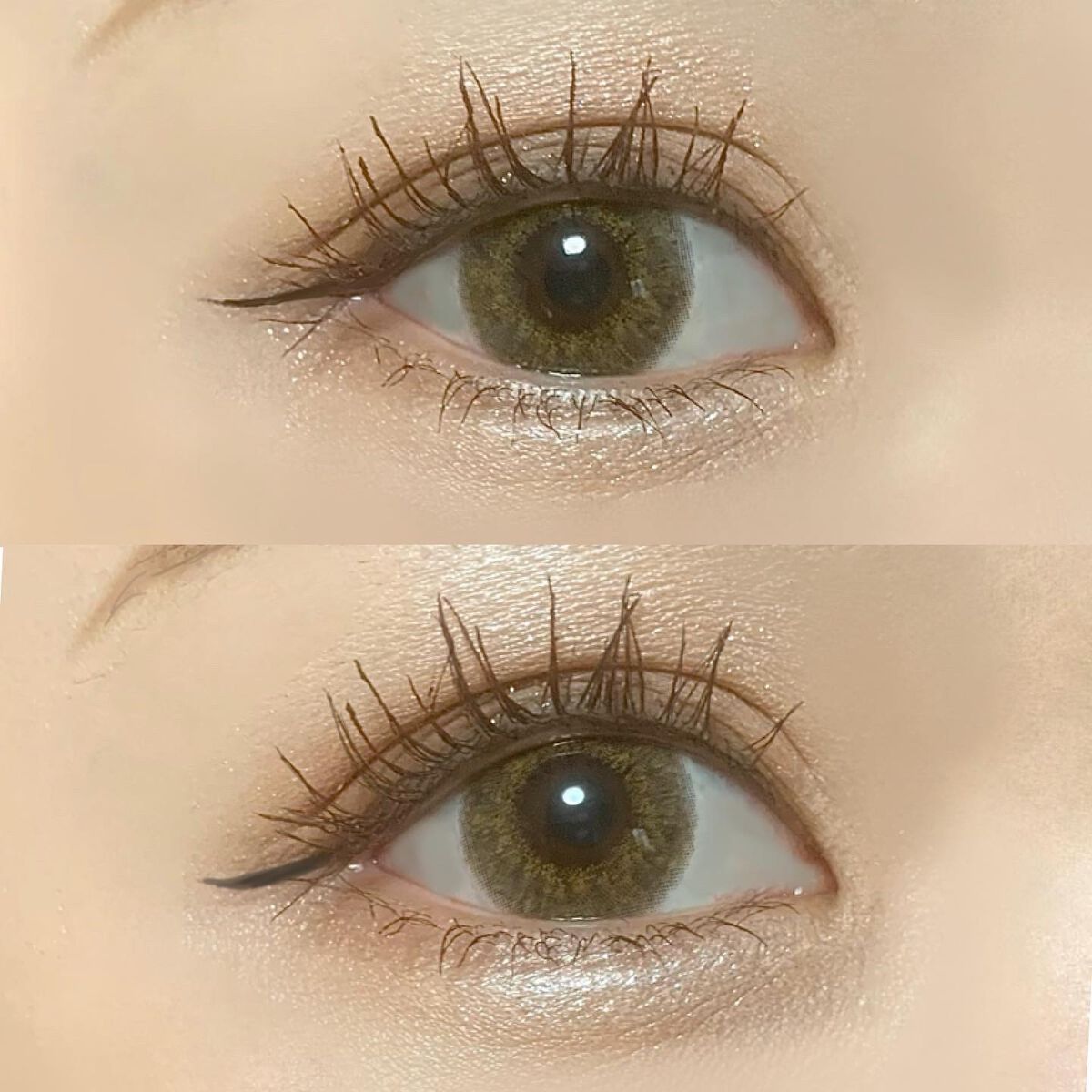 どちらもポイント使いでにじみやすい目尻の下の方を避けました☝️ 黒目上、目頭などに入れるのももちろん可愛いですが可愛すぎずキラキラしすぎず…なグリッターメイクにしてみました😊 大粒グリッターを使う時は元々密着しやすいものを使う、かつクリームやリキッドのアイシャドウベースやカラーレスなハイライトを仕込んでおくとヨレなくてオススメです💞