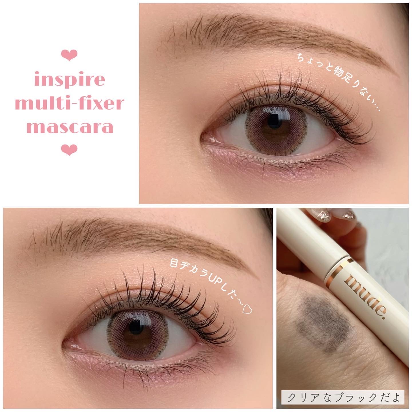 mude.ニューグラムコレクション&マスカラ✍️-----------------------発売してすぐ買ったまま眠らせてたキラキラセットと(買って満足しちゃう癖をどうにかしたい)新作のスキニーマスカラを使ってメイクしてみたよ👀💗まずはラメ好きにはたまらないアイパレ🌟これはもう可愛い以外の何者でもないよね!?全体的にピンク系なので甘めの雰囲気です☺️☁️割としっとりめだからラメ飛びも少ないのと、時間が経っても二重の溝にたまらないのが良かった◎手持ちの他のアイシャドウと組み合わせるのも可愛いよ💕お次はニューインスパイアコレクションのクリアブラック・マルチフィクサーでまつげの印象UP👁下地にするのはもちろん、これ単体でも使えるよ✌️黒マスカラだと強めになるしクリアマスカラだと物足りない…そんな時にぴったりなクリアブラック😉🖤さりげなく目ヂカラ出るのがお気に入り!ラッシュリフトしてるからカールキープ力は正直わからないんだけど軽めの液だから重さで下がることはなさそうな感じ。とにかく細いから目頭とか下まつげも塗りやすいのが嬉しい💓最後はアイパレとセットになってるグロス♡カラーは#rosyglam🌹ヌーディーなピンクにゴールドラメがたっぷり🤩厚みがあるグロスなので気になる縦シワもつるん!ぽってり可愛い唇にしてくれます💖ほんのりフローラルの香りがするよ。キラキラセット(アイパレ&リップ)は3200円、マスカラは1500円で買えたよ💡やっぱりピンクコスメはかわいいな〜とあらためて思ったまろまゆなのであった🥸ちなみに今回付けてるピンクカラコンはMELANGEの#アーバンフェミニティックベージュです😌🎀気になる方はチェックしてみてね🔎-----------------------いいね・フォロー・コメントとっても嬉しいです🥰他にも色々投稿してるよ👉@maromayu_unnie-----------------------#mude#ミュード#Qoo10購入品#韓国コスメ#newglamcollection#inspiremultifixermascara#インスパイアコレクション#マルチフィクサー#メランジェ#MELANGE