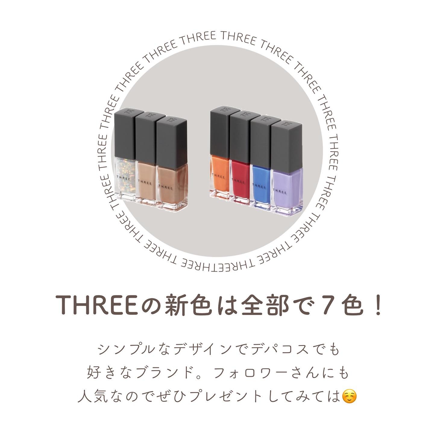 予算2000円THREEのギフトレビュー💓( @threecosmetics)オンラインショップが何故かずっと使えないので今回は店頭で買ってみました!テキトーにさっと塗ってもムラにならないしセルフレベリング効果で塗った時も凸凹しててもなめらか...
