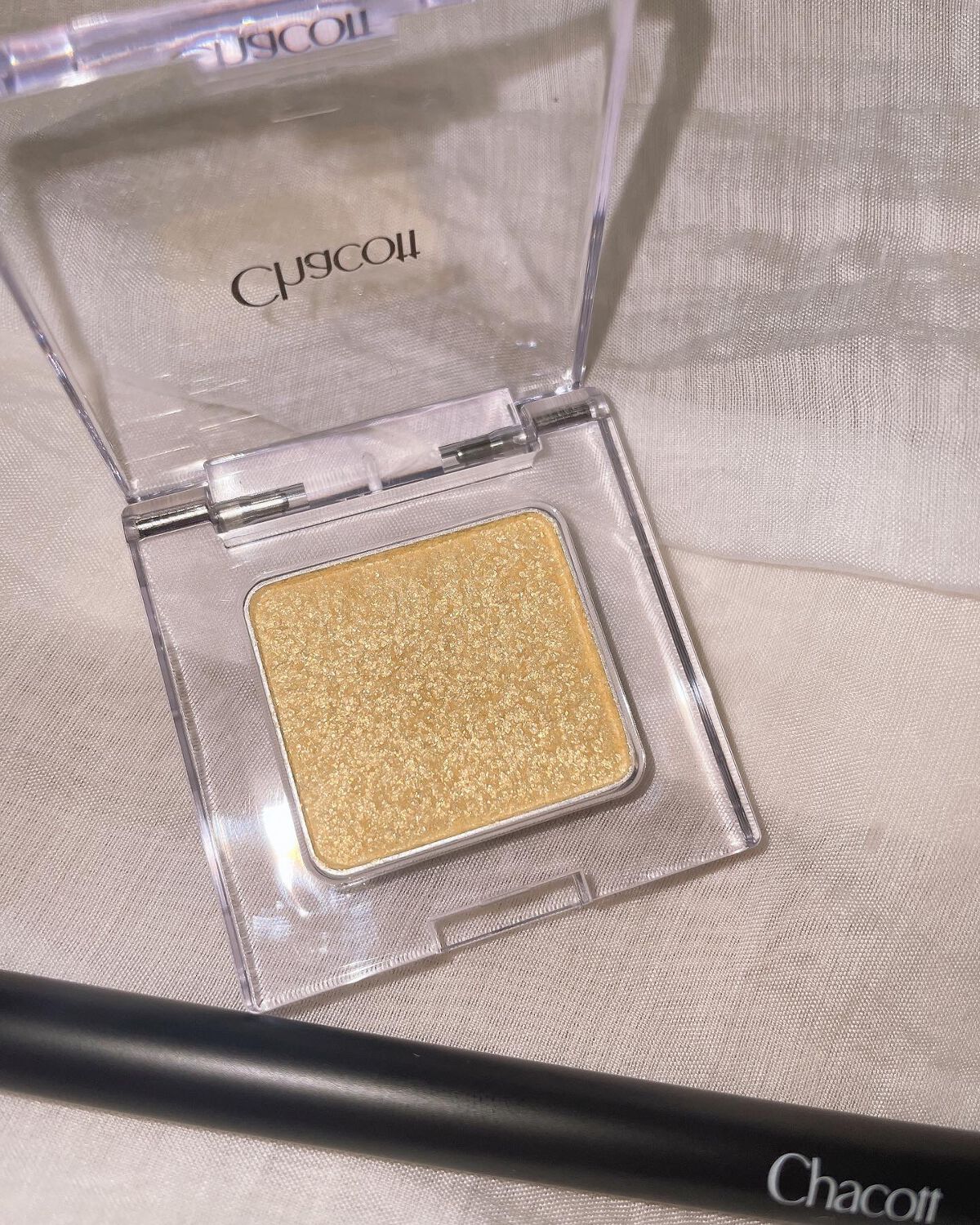 .▽ChcacottCOSMETICS アイシャドウブラシ083 マルチカラーバリエーションSP04アイシャドウとブラシをセットでGET✌🏻チャコットといえば”ギャルがマット肌を作り出すパウダー”のイメージ😂今回初めてアイシャドウを使用しました✨使用したカラーはSP04で、イエロー系のカラーに大小のパールとラメが入っています。肌に乗せてみると、ガッツリ黄色!ってわけではなくふんわりと黄色みのある色味。何より、すっごく上品なキラキラ感でかわいすぎる…!!!上まぶたに乗せても、涙袋に乗せてもめちゃくちゃかわいい🫶🏾アイシャドウブラシも触り心地がふわっふわで粉飛びせず使いやすいです😊手でアイシャドウを塗った時とブラシを使った時じゃまた仕上がりが変わるところもよい✌🏻このブラシはアイシャドウにはもちろん、目頭や鼻先、唇の上などの細かくハイライトを乗せたい時にも使いやすいサイズ感でちょうど良かったです🎶#chacottcosmetics#映えるメイクアップ#チャコット#アイシャドウブラシ#アイシャドウブラシ083#メイクブラシ#マルチカラーバリエーション#アイメイク#アイシャドウ#単色シャドウ#ラメメイク#monipla#chacottcosmetics_fan