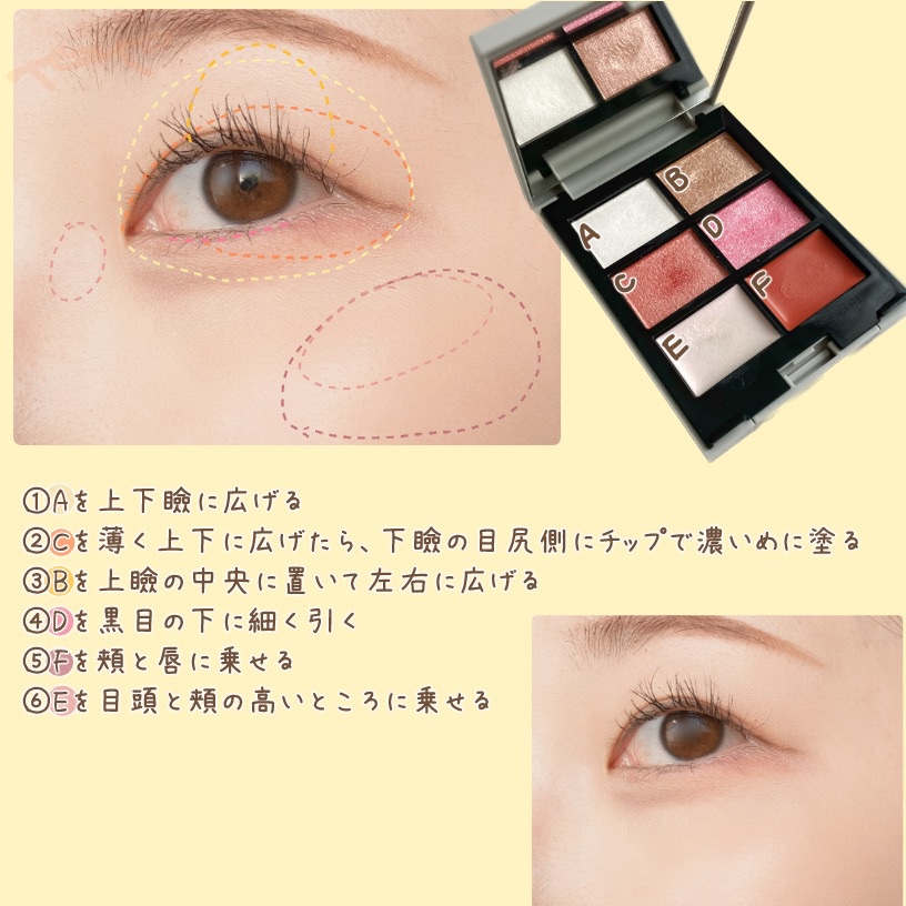 オリジナルの美しさを彩る組み合わせは260万通り。 一つのパレットにアイシャドウとハイライト、リップ&チークが揃っていて、とても便利です。 私が選んだカラーはどれもかわいくて、お気に入りのパレットになりました。