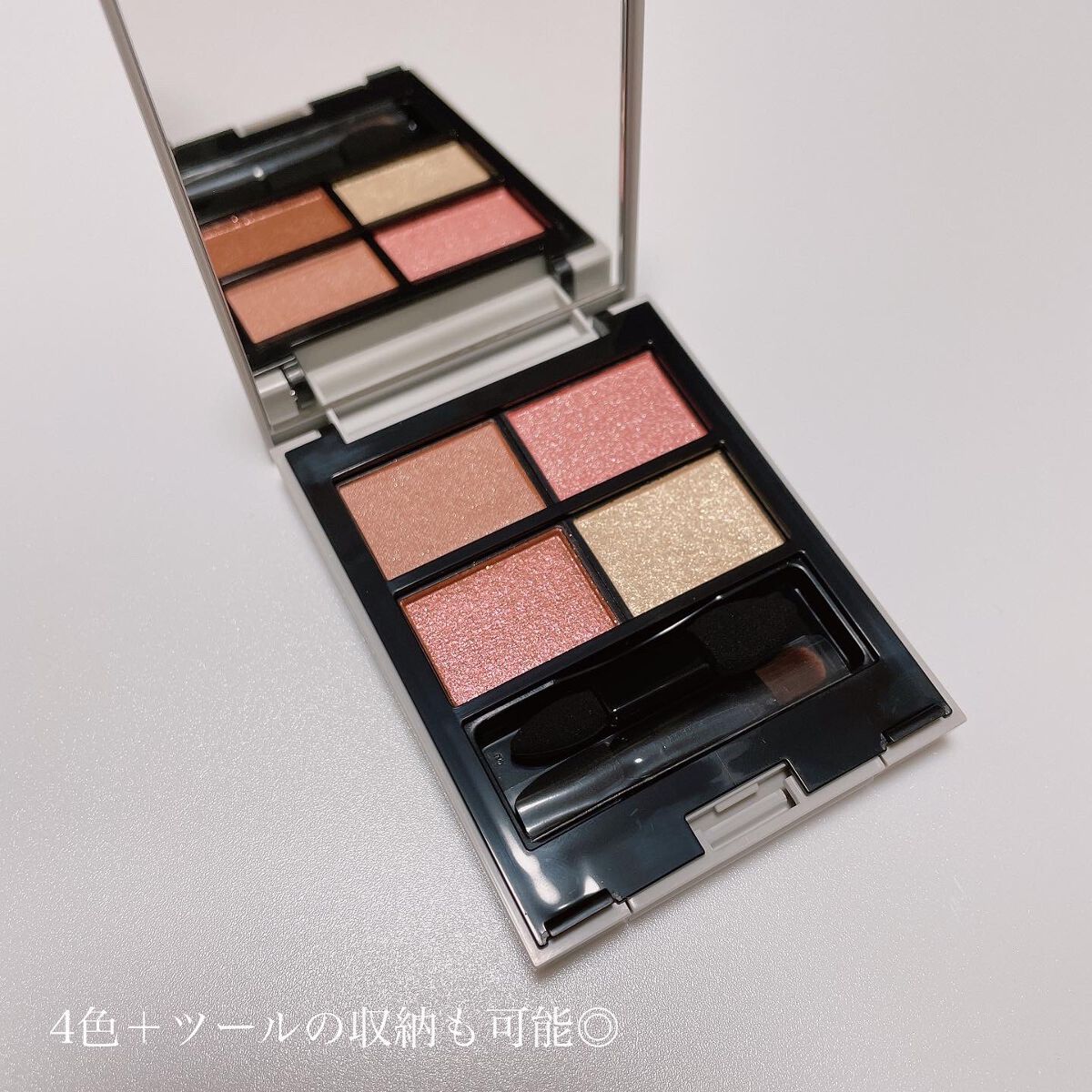 アイシャドウ、リップ&チーク、ハイライトのバリエーションから、肌の色や普段のスタイル、気分や理想像などにあわせてフィットする6種を自分で組み合わせたり、質問に答えて診断してオリジナルのパレットが作れるとっても楽しいコスメ✨️ 70色以上のカラー展開で、なんと組み合わせは340万通りにもなるそう!! 質感も全部で6種類あって、アイカラーがジェム、グリッター、パール、マットと、リップ&チーク、クリームハイライターからそれぞれ組み合わせるので自分好みに選ぶワクワク感がすごい! 個人的にこのアイシャドウのパール感がとっても大好きなので、今回はアイカラー4色のうち3色をパールの質感からチョイスしました! 粉質もしっとり✨️ グリッターはオレンジ系やけど、ラメがピンクでめちゃくちゃ可愛いんよ(*´꒳`*) 発色も重ね塗りで調節できて使いやすいし、嵩張らへんのにこのパレット1つでアイシャドウもチークもリップもハイライトもできて持ち運びにも便利すぎる!!