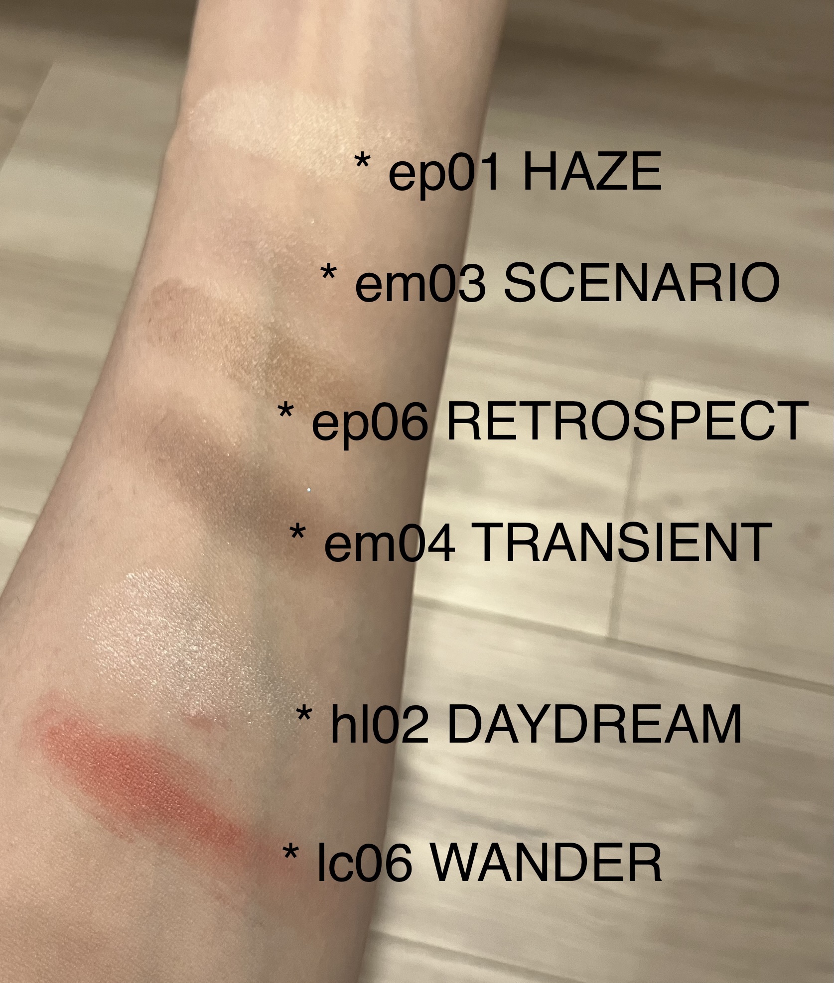 アイシャドウ・リップ&チーク・ハイライトのバリエーションから、6種類を選ぶ自分だけのマルチパレットが作れるMN「MYMIXEDPALETTE」を使いました!全て自分でカラーを選ぶこともできますが、今回は普段のスタイルやどんな場面で使いたいかなど簡単な診断を通じてオススメされたパレットの中から選びました。三つほど提案してくれたのですが、自分が選びそうなカラーだったり、いつも自分が選ぶものとは少し違うカラーで試してみたくなるパレットだったりどれにしようか迷います!もちろん、そのオススメされたカラーから自分の気になったカラーに変更することもできます。カラー展開は70色以上。その組み合わせはなんと340万通りにもなるそうです!サイトで仕上がりイメージも確認できて、カスタマイズできるので捨て色なしです。商品の支払いをしてから翌日発送されてその次の日には到着。とっても仕事が早い!悩みに悩んだ結果今回選んだのはこちら*ep01HAZE*em03SCENARIO*ep06RETROSPECT*em04TRANSIENT*hl02DAYDREAM*lc06WANDER実際使ってみたところ、サイトの仕上がりイメージよりも発色はやや控えめな感じがしました。その分肌馴染みがよく上品な仕上がりです!パールが入っているものはツヤっとして綺麗だし、マット系はなめらかな仕上がり。ハイライトは軽めで透明感がでます。どれも厚塗り感がなくナチュラルな感じでとってもいい!個人的にリップ&チークは発色も良くてまさに求めていたカラーだったのですごく嬉しい!今回は普段使いする上品な大人カラーを目指したのですが、どれも使えるカラーで気に入ってます。とはいうもののラメ系を全然入れてなかったことに後から気付いて後悔…。他にも限定カラーや気になったカラーがあったのでまた買い足していきたいな!