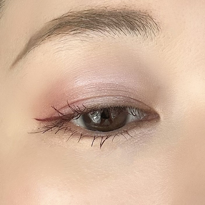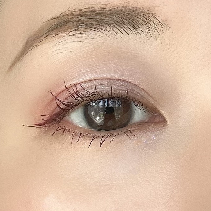 暖色系の柔らかいカラーなので裸眼でも盛れる! tender poppyはコーラル×トープの組み合わせで甘くなりすぎず、花びらのような繊細な目元になります。 アイメイクにラメをたっぷり使っているので、チークは控えめなベージュ系がおすすめです🥛 今回リップは赤みのあるリップでピュアな雰囲気を目指しました!