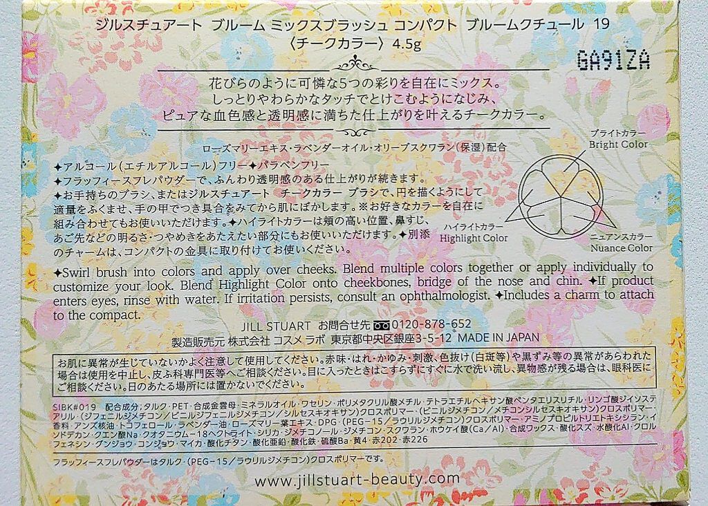 商品詳細情報ジルスチュアート ブルーム ミックスブラッシュ コンパクト 19 flower carpet (限定色)