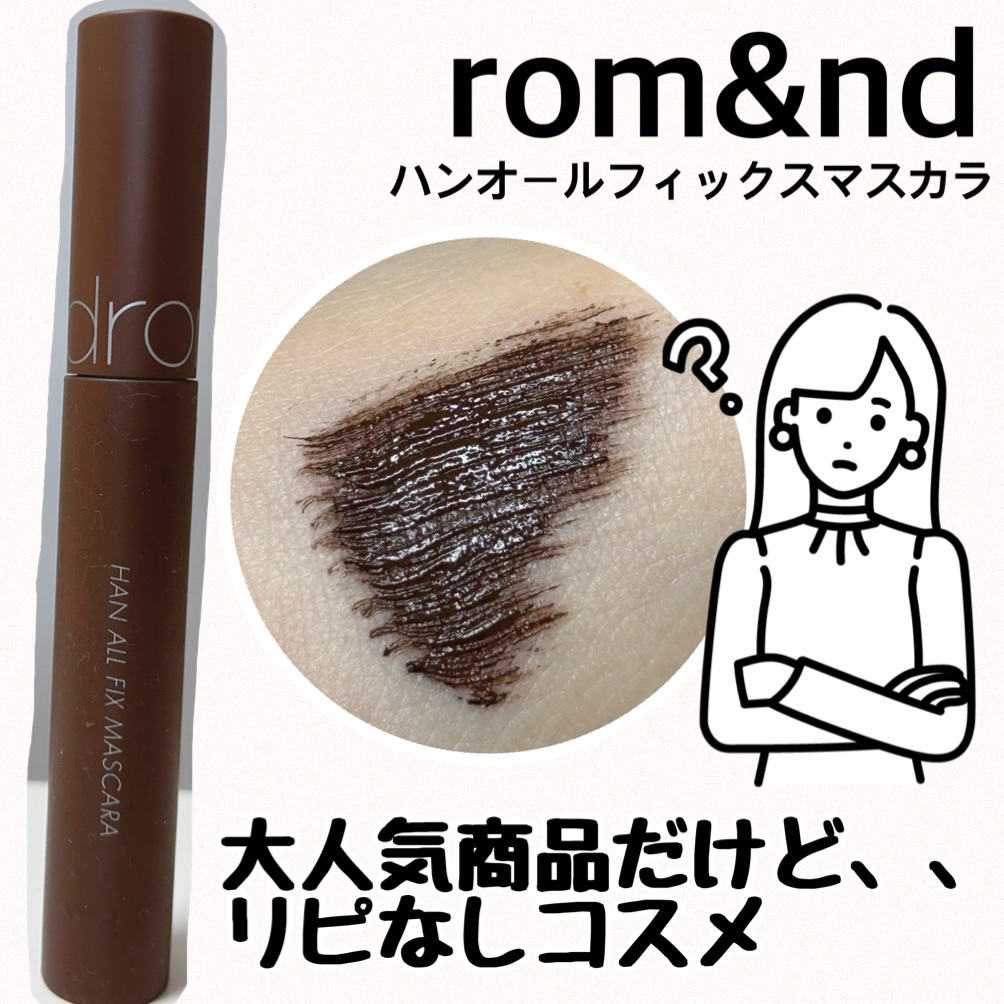 【ロムアンドハンオールフィックスマスカラL03】〈メリット〉・色は可愛い〈デメリット〉・ブラシが大きく塗りにくい・ダマができやすい・クレンジングオイルでも落ちにくい・容器がゴム状でほこりが付きにくい〈まとめ〉大人気商品ですが何がいいのか私には分かりませんでした。リピなしです。dejavuのマスカラの方が使いやすい。#ロムアンド#rom&nd#マスカラ#プチプラコスメ#韓国コスメ#プチプラ#Qoo10#メガ割り