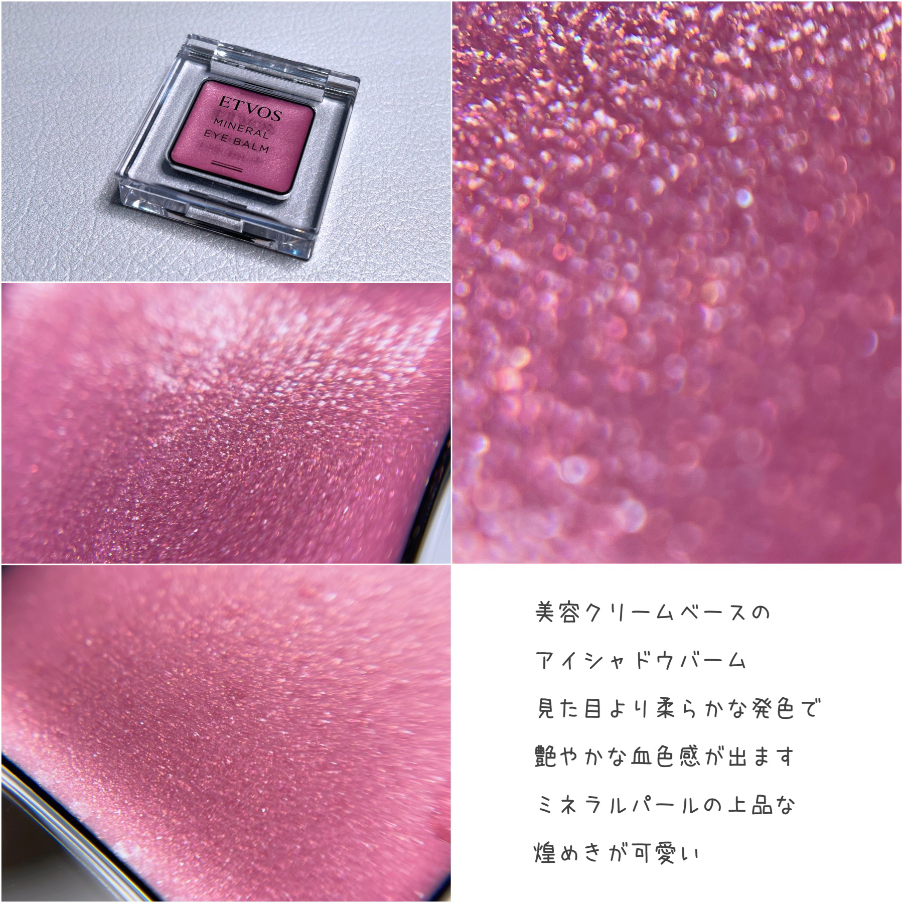 𖤐ETVOSエトヴォス ミネラルアイバームロゼソーダ美容クリームがベースの単色アイシャドー。天然ミネラルの繊細なパールがツヤやかに発色し、まぶたのくすみを払いながら印象的な目元に。メイクしながら気になる目元まわりの肌悩みもケアできる、多機能クリームアイシャドー。ロゼソーダ:シャンパンを思わせる弾けるパール感が魅力で、くすみを飛ばしたい時のベースや表情を明るくしたい時のアイカラーとして大活躍。𖧷┈┈┈┈┈┈┈┈┈┈┈┈┈┈┈┈┈┈┈𖦞ふんわりと、春の表情へ。 赤みをポイントに、やさしさが咲くメイク🌷🌟2022年1月12日数量限定発売🌟ロゼソーダは甘さと明るさ、ひとさじの青みで今っぽさもプラスできるロゼカラー🌹あざやかなピンクが肌にのせると自然になじみ、まぶたに華やかさと透明感をプラスしてくれます💘大人女性にも使いやすい青みピンクカラー…!😭💕今までのミネラルアイバームのピンク系カラーはどちらかというと黄み寄りのお色が多かったのでこの青みロゼカラーの発売は本当に歓喜でした🙌🏻💕透け感と上品なツヤ感のある青みピンクが本当にたまりません…😭💞私の場合は専らアイシャドウベースとして使用しています💡程よくパール感があり、次に使うアイシャドウに華やかさを加えられるのが◎持ちも良く、朝塗って夜メイクを落とすまで目元がしっとりしています💗乾燥が気になる季節には特に手離せません😌🌹個人的にいつも思うのが、アイシャドウというよりは色付きアイクリームという位置付けなので色味を重ねようと多めに使うとヨレます。一度ヨレるとお直しがやや厄介ですので、少量をサッと塗るようにしています☻そして、ロゼソーダに関して言えば比較的見たまま発色してくれるので、重ね塗りする必要はあまりないかな?と個人的には思います💡今年の春はロゼソーダが大活躍しそうです🕊💕#ETVOS#エトヴォス#ミネラルアイバーム#ロゼソーダ
