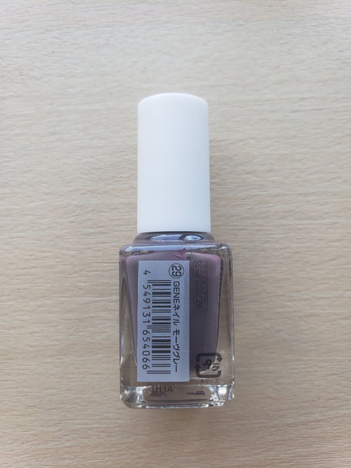 GENE TOKYOのモーヴグレーだけで塗るとグレーが強めのくすみカラーになりました。 紫にしたかったので、フレンドネイルを買いました。 試しにGENE TOKYOの上に塗るとホログラムの紫感がすごく出ていい感じになりました。 ネイルは塗りなれていなくて、ご覧の通り下手くそでボコボコしていますが、フレンドネイルのホログラムがいい感じに隠してくれてネイルが上手くなった気分です