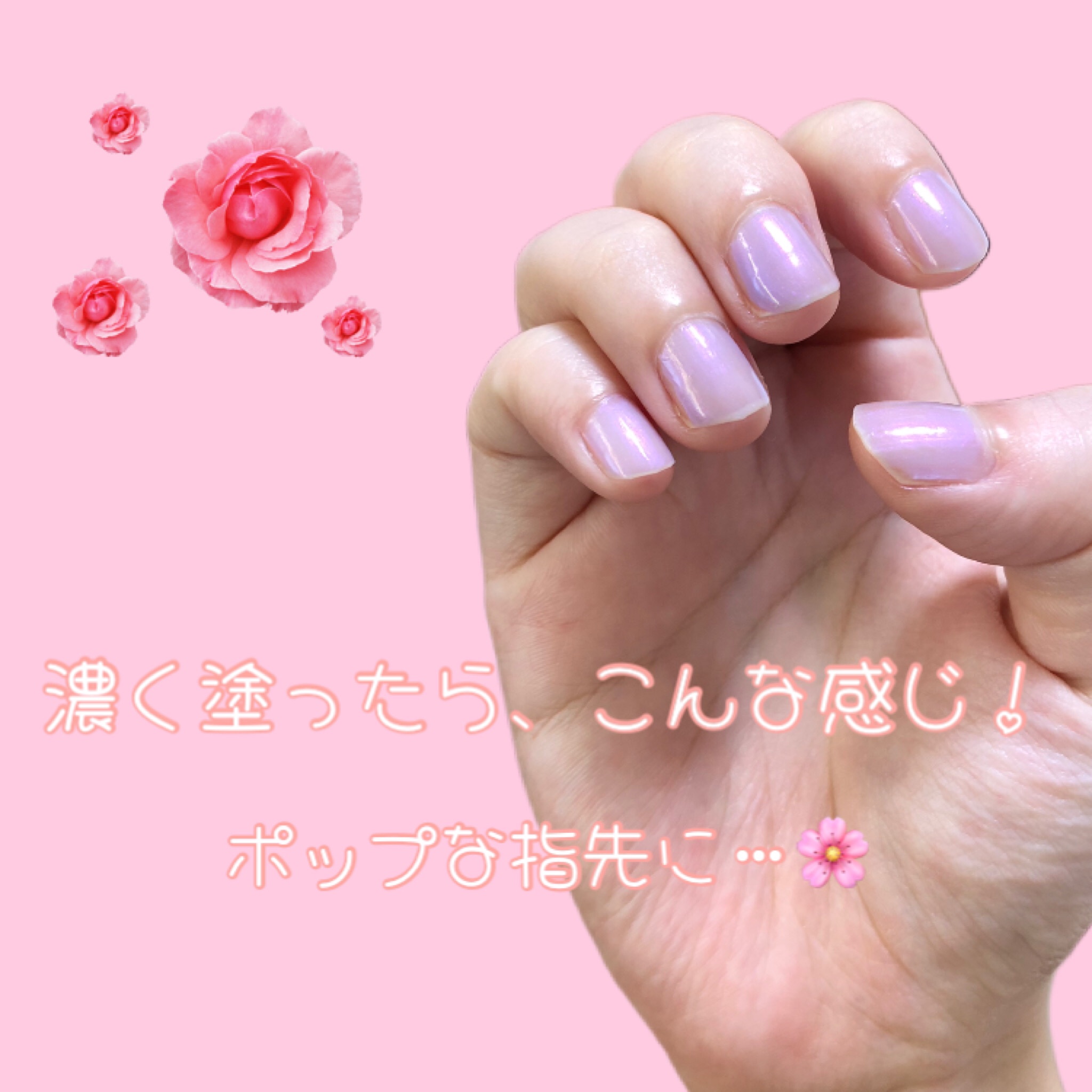 こちらの商品は、マーメイドネイルという名称からして、可愛い予感しかしない… そして実際に、薄く塗ったら透明感、重ねて塗ればポップな仕上がりになる、 100円とは思えないネイルとなっております(*^^*) 不器用な私としては、色むらができたりはありますが、、 何より、色が可愛い!!!💕 まさに夢かわといった感じかなぁと思います🌸 (※ただ、パープルなので肌がいつもより黄色っぽく見えたりはあるかもしれません。でも色自体すごく可愛いですし、薄く塗ったら透明感が出ます!) 紫系のネイルに興味がある方、ポップな感じの可愛いネイルをお探しの方などは、ぜひぜひチェックしてみてはいかがでしょうか?