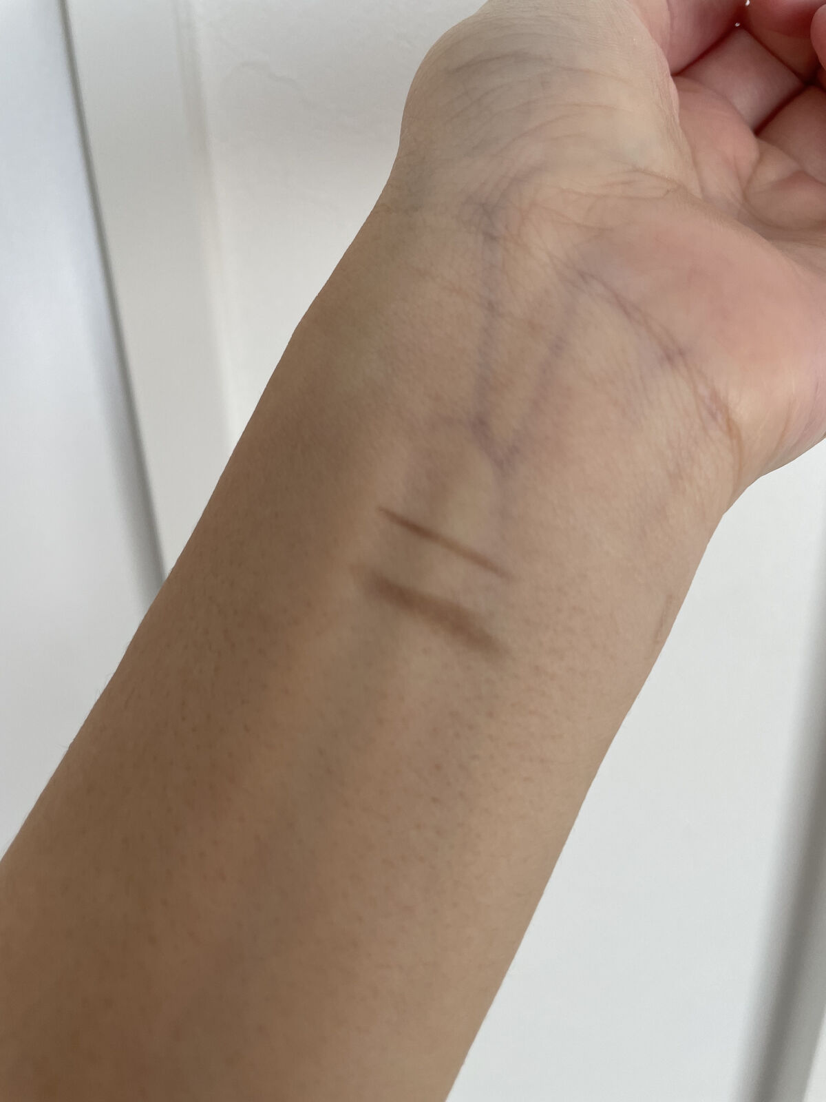 【発色】あまり濃くないので失敗しづらくて助かる 【色もち】水汗に強いウォータープルーフだし、こすれにも強い 【良いところ】オレンジとか黄味があるとほんとに変になっちゃうんだけど、コレは黄味を感じないので凄くブルベ夏に似合って良い 【イマイチなところ】ちょっと固いので強く描かないと濃く描けない