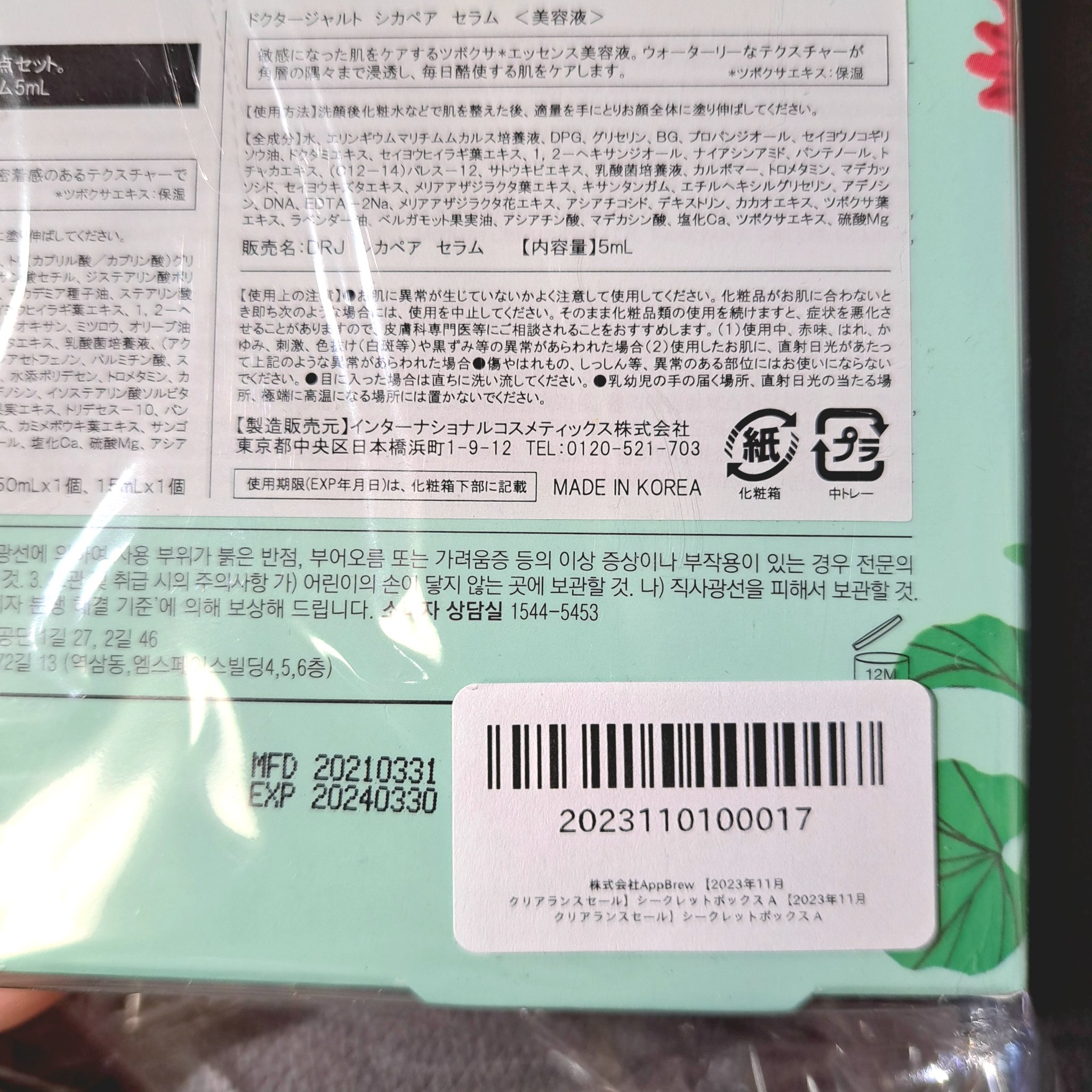 LIPS2023年11月クリアランスセールのシークレットボックスA買ってみました💡🌼セット内容🌼Dr.Jart+シカペアクリームセット5,500円ZEESEAサテンラスティングファンデーションOC02イエローベージュ2,580円ZEESEAドリームランドアイシャドウ4シェード#03パープル2,178円ZEESEAカラーリップグロスA011,980円?このセットで5,500円なのでオトクはお得かな。ほぼ使用期限が5ヶ月切ってるから、すぐに使うつもりで買う人にはいいかも。