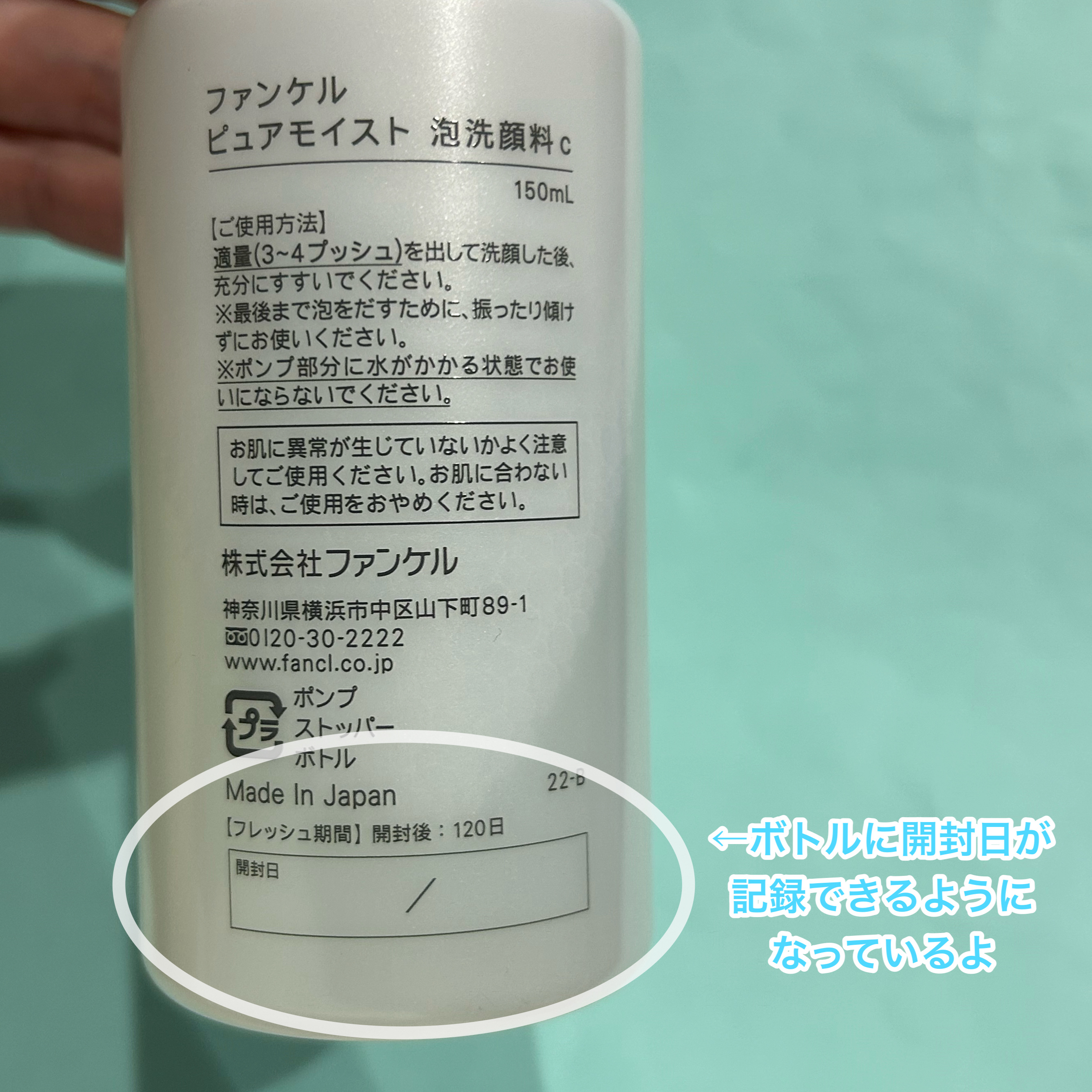 【使った商品】ファンケルピュアモイスト泡洗顔料150ml¥1,320【商品の特徴】簡単にふわふわ泡が出てくる、プッシュ式の洗顔料ダブルセラミドとアミノ酸系洗浄成分が、うるおいケア植物由来の肌あれ防止成分を配合【使用感】泡は少し緩めだが密度は割とある感じ3、4プッシュ使用とのことで、いつも泡は多めに乗せたいので4、5プッシュ使っている特にすっきりするとか、しっとりするとかないが、無難な感じがすごく使いやすい【良いところ】朝手軽に使える泡が気持ちいい敏感肌でも問題なく使える値段も安い泡洗顔を色々使ってみていて、なんかこれちょうどいいかもっていう感じがしていてリピート予定【イマイチなところ】安いが減りが早い