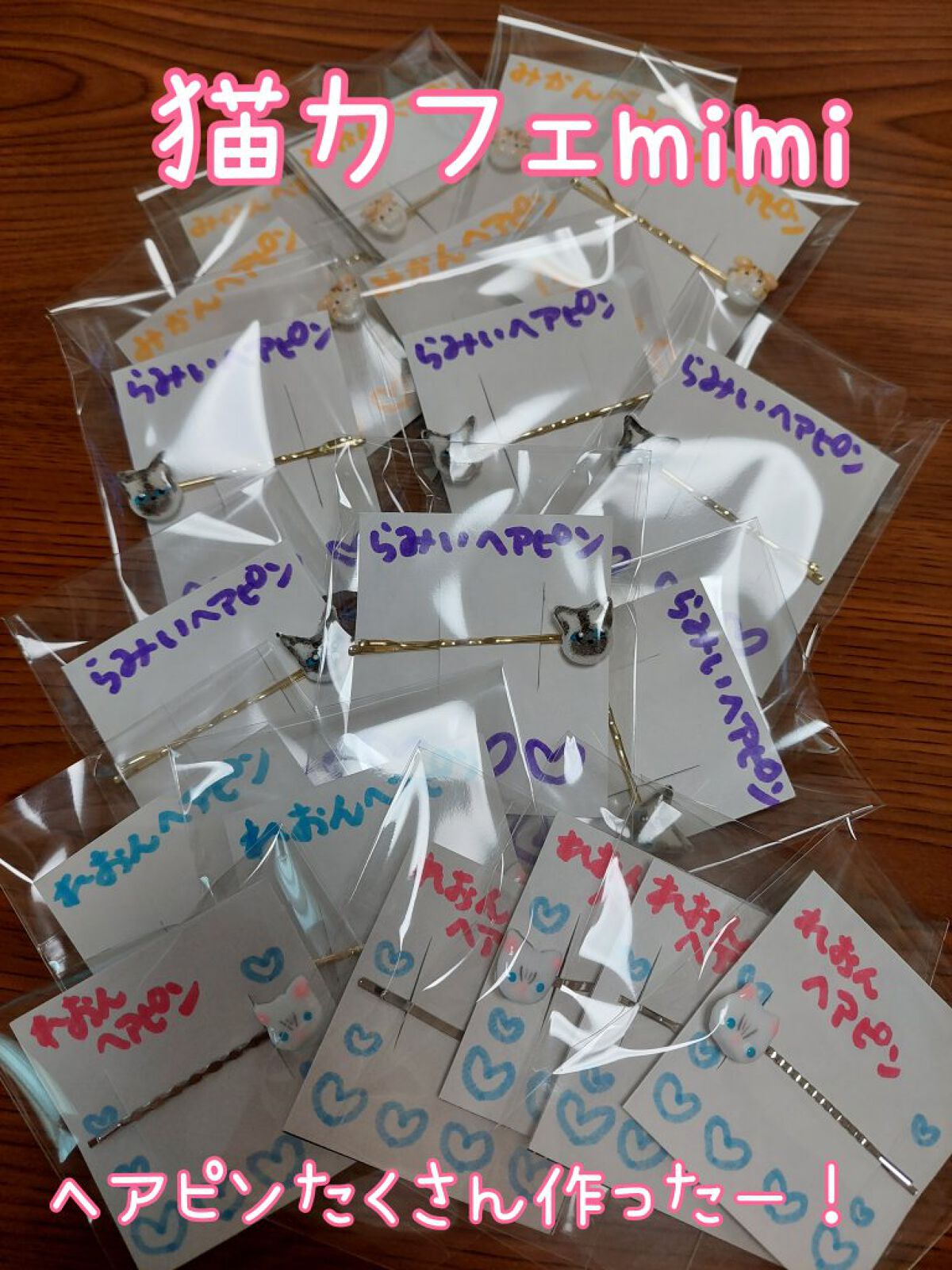 たまごです。昨日健康診断して何も問題無かったのに喉が痛いという謎な現象がおこってます。笑😂😂😂昨日夜なべして作りました笑猫カフェmimiさんの猫ちゃんのらみい!ちょっとクオリティが低く…でもこれ以上手を加えると変な感じになってしまい、試行錯誤してやっと似てるかな?という感じになったのでもうヘアピンにしちゃいました!笑❤猫カフェmimiさんで人気上位の3匹れおんらみいみかんのヘアピンです!小さい子から大人の方まで買ってくれたら嬉しいな…そんなこんなで今日は猫カフェ行って納品してきます!2枚目の写メが今回作ったヘアピン全部です!✨頑張った自分!笑では!たまごでした!🥰