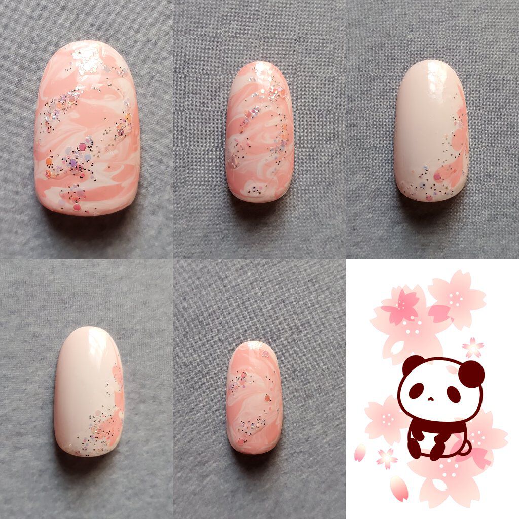 春を先取り桜イメージネイル🌸淡いピンクを2色使い、マーブルとピーコックをアレンジしました。最後にラメをチラつかせて太陽の光を浴びたように表現✨使用したのはネイル工房のFree、ピールオフマニキュアカラーです。不透明で高発色の水性マニキュア。匂いなし!ネイル工房の半額セールで¥199で買えますよ♪お湯でふやかすとペロンと剥がれます。以前から何度も紹介しているので良かったらそちらも見てください。#セルフネイルのすゝめ
