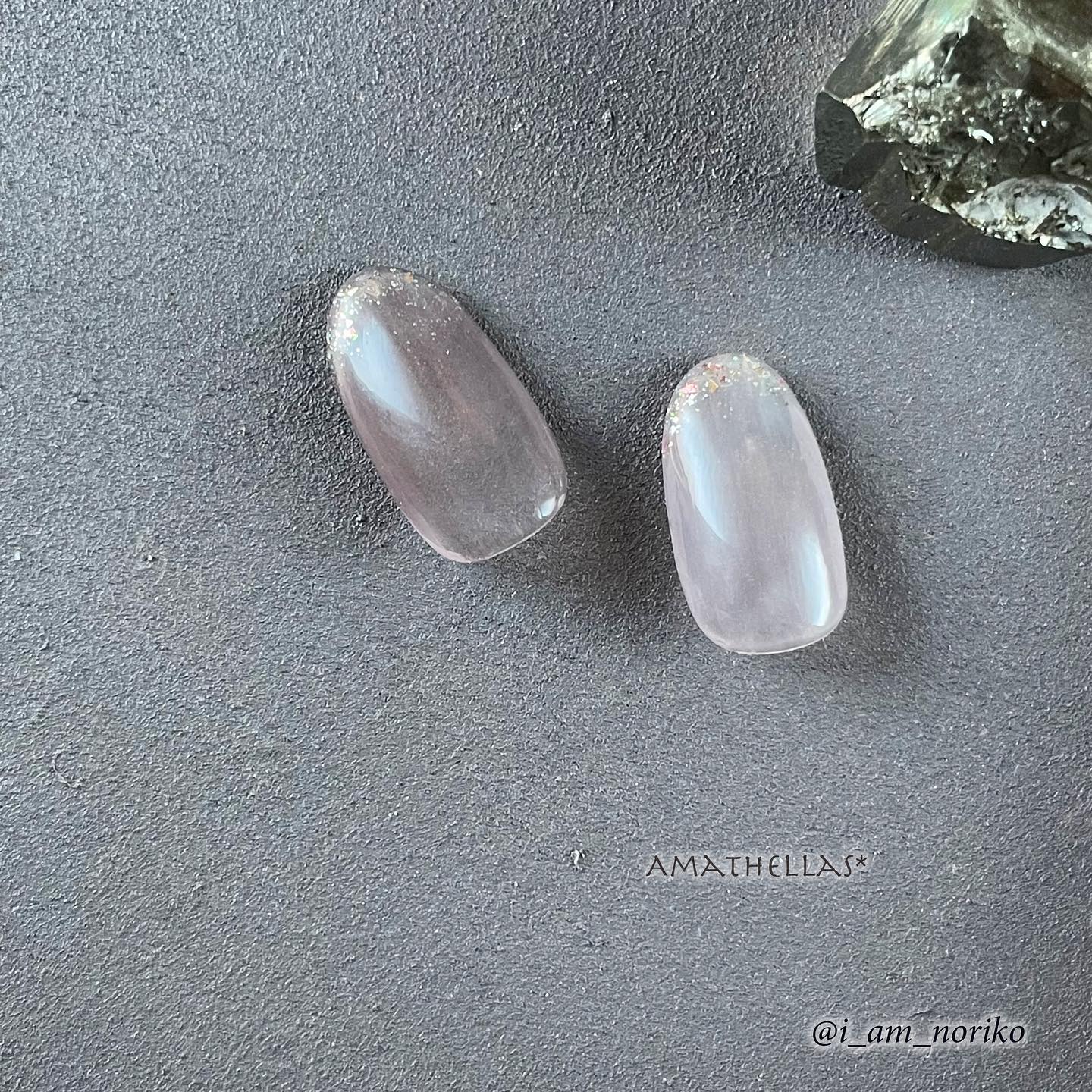 『うるうるシアーホワイト✨』こんばんは!ネイルアーティストのNollico(ノリコ)です。本日は#ネイル工房の定番シアーホワイト『オムニジェルOMA-01』を使用したアートをご紹介致します。.✨うるうるミルキーニュアンスな輝き✨キラキラ偏光フィルムを使用したシアーホワイトのニュアンスアート*..………………………..*デザインコンセプト定番カラーのシアーホワイトを綺麗な光の変化を伴うニュアンスアートにできたら素敵かな。ありがちに見えるけれど、よく見ると不思議!そんなアートを作りたくてデザインしました💓..親指、中指、薬指はシアーホワイトを塗って硬化したら縦長フォルムのカラーフィルムeiddo8を2〜3枚、一部が重なるように置き、さらにシアーホワイトを重ねました。ミキシングクリアジェルで段差をカバーしてトップジェルを。親指と中指には、シェルとギャラクシー16でパーツ的にデコレーションを施しています。ゴールドに見える部分は、ビジュージェルを盛ってからミラーパウダーを擦り付けました。..人差し指はカクテリージェル05を。小指にはシアーホワイトにカクテリー05を重ね塗り。爪の先端にラメを少しだけのせました。...オムニジェルOMA-01はシアーホワイトなので、重ね塗りでもシアー感を保ってくれるピュアなカラーです。1度塗りなら、かなり薄めのホワイトに。2度塗り、3度塗りするとムラもカバーできてホワイト感が増します。YouTubeでやり方を公開しています。*..………………………..【使用アイテム】・ベースジェル:GelNailSystem1・ノーワイプトップジェル:GelNailSystem6・ミキシングクリアジェル:GelNailSystem11・ビジュージェル:GelNailSystem15・オムニジェル:OMA-01・カクテリージェル:05・セルフカラージェル ギャラクシー:16・カラーフィルム:eiddo8・ミラーパウダー4色パレット:12 ピンクゴールド使用・シェル:超薄・ホワイト・シリコンブラシ:ブルー..Nollico@i_am_noriko #ネイル#セルフネイル#ニュアンスネイル#天然石ネイル#上品ネイル#シアーネイル#ネイルデザイン
