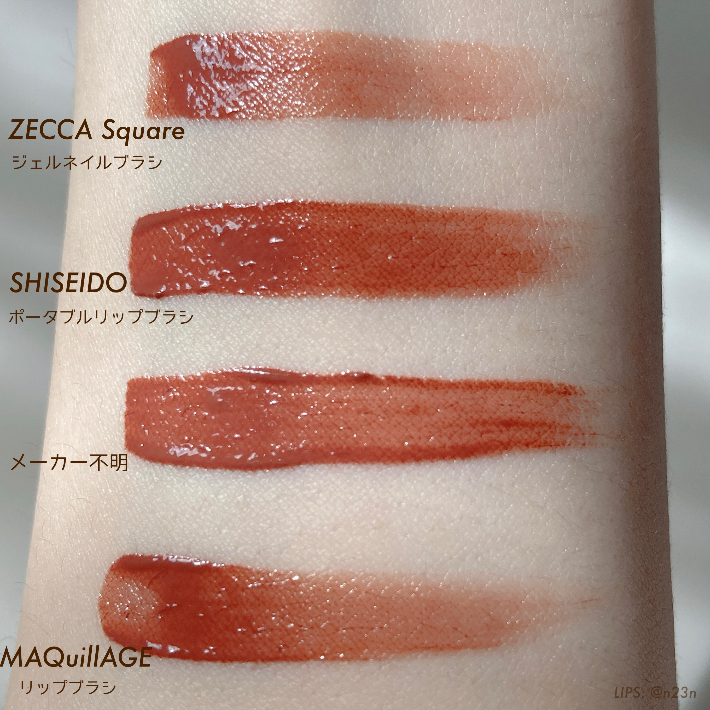 【リップブラシ】ネイル工房絶佳筆SquareSHISEIDOザ・メーキャップポータブルリップブラシマキアージュリップブラシ一つメーカー分からないのですが手持ちのリップブラシたちです平たくて幅の広いものが使いやすくて好きなのですがなかなか売ってなくてジェルネイル用のブラシの形が理想的だったのでそちらを購入して使ってます※ジェル⇔リップメイクでの使い方はできないのでどちらか一方の使い方のみです一般的なリップブラシの幅結構狭めほかの3つはどれも幅同じくらいマキアージュのはかなりコンパクトなので体感小さく感じる硬め----------柔らかめマキアージュ>絶佳>赤いの>資生堂絶佳筆はそもそも安いのでかなりオススメリップブラシと名前がついてると高くなるのでそうじゃないブラシだと安いマキアージュのは本当に持ち歩き用として最適で少し使いにくさはあるもののスリムでスライドででるので◎赤いのはメーカーわならないけど1000円くらいだったと思われる#鹿の間ちゃんに届け