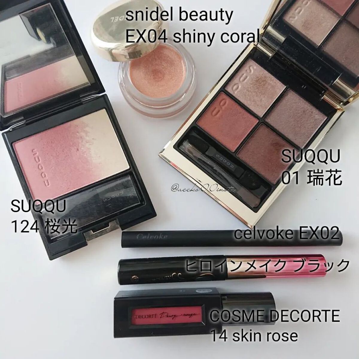 #手持ちのsuqquを愛でよう過去ポストを見てみたら、シグニチャーのメイクポストは全然あげていないので、また少しずつポストしていこうと思います🙋今回は瑞花。これ日中は可愛いんですけど、夕方少しくすむんですよねー😩くすみカラーは得意なんですが、私の肌の色との愛称があまりよくないみたい🤗特にね、シグニチャーは透け感が凄いから、私にはこういう淡い感じのカラーよりも、しっかり色づくパレットの方が使いやすいかも。そこで投入した秘密兵器ジェムw(秘密でも何でもない、いつも通り)瑞花には、venusよりもshinycoralが合いますね🥺🔥shinycoralのお陰で、夕方もそこまでくすまず✨ベースって大事だなと再認識。ベースの仕込みさえしっかりしてれば、どんな色も使える気がする🥺(ウソ、苦手な色たくさんある😂❤️)他のアイテムも、全部淡いトーンで揃えてみました😉💓*☆使用コスメ☆suqqu#シグニチャーカラーアイズ01#瑞花#ピュアカラーブラッシュ124#桜光snidelbeauty#アクアジェムグロウEX04shinycoralcelvoke#シュアネスアイライナーリキッドEX02heroinemake#マイクロマスカラアドバンストフィルム01漆黒ブラックcosmedecorte#ルージュデコルテリキッド14skinrose#suqquメイク#suqqu#スック#シグニチャーカラーアイズ01#スックアイシャドウ#signaturecoloreyes#suqqueyeshadow#suqqueyeshadowpalette#beautymakeup#ブルベ夏メイク#メイク好きさんと繋がりたい#suqqu好きな人と繋がりたい#コスメ垢さんフォロバします#pc夏秋
