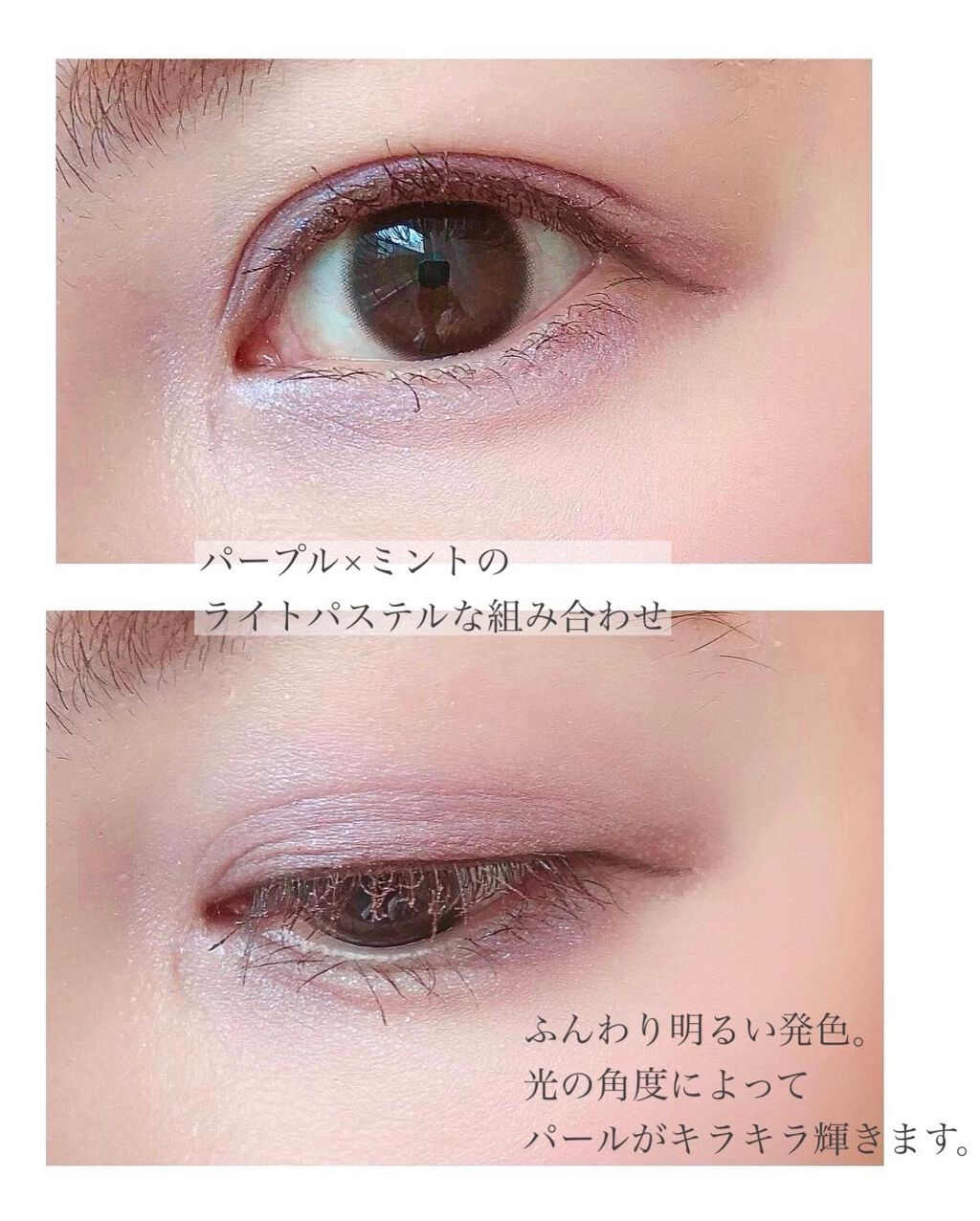 Mint on the Rocksは 光の角度によって変化するアイスパステルの輝きが吸い込まれるような眼差しをつくるプリズマティックカラーで 本当にキラキラなミントとラベンダーの組み合わせがたまらなくかわいい。 ブルベにとってグリーンのアイシャドウってどうしても鬼門だけどこのミントグリーンは緑が強すぎなくてとても使いやすい☺️🌸 縦割りで使うだけで簡単に使えるのでカラーものが好きな初心者さんにもおすすめ🥰
