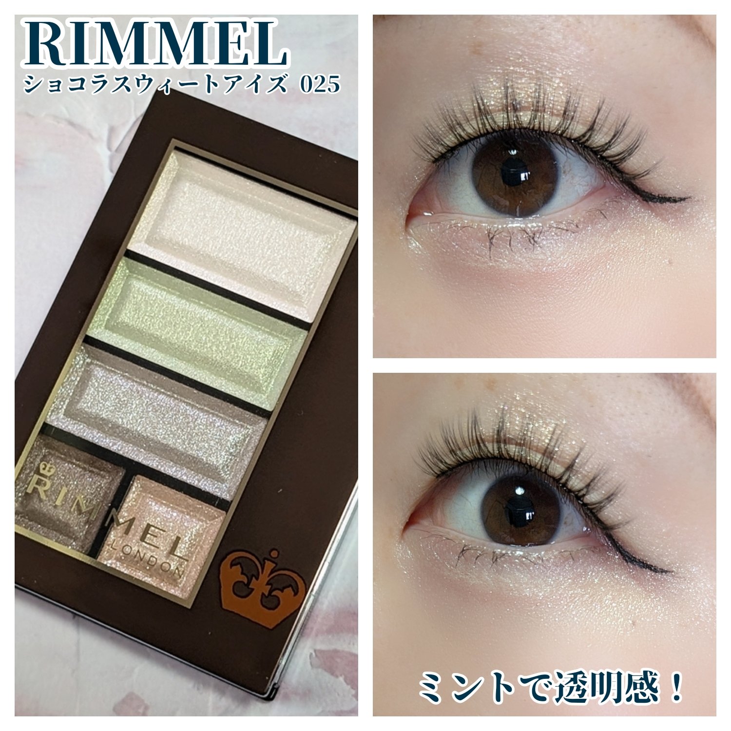 ☆リンメル ショコラスウィートアイズ025☆ミントカラーのアイシャドウが使いたくて買いました。前回キャンメイクの限定カラー(27番フルーツジェラート)ほぼ発色せず失敗だったので、リベンジです。結論、とても良いです♥グリーンの発色はキツすぎず淡...