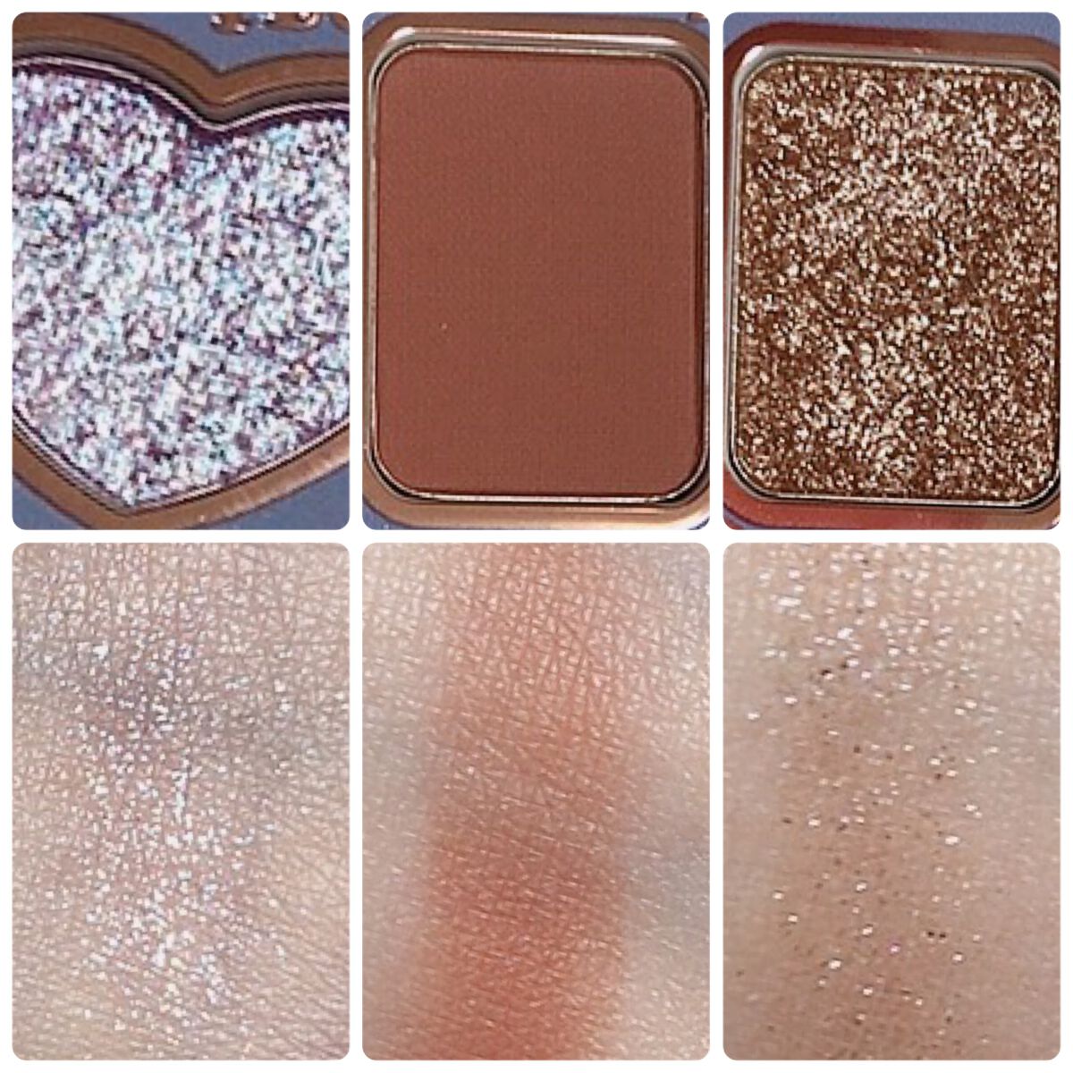 パケが可愛いのはもちろんアイシャドウのカラーも発色が良くてラメもめちゃくちゃ可愛かったです😵💫💗 粉質もしっとりとしていて密着力があります!! 個人的には左上のハートのパープルラメが本当にどタイプ過ぎて単色でも発売してほしいくらい…𓈒𓂂𓏸♡ 自分用はもちろん、プレゼントにあげても喜ばれること間違いなし!!