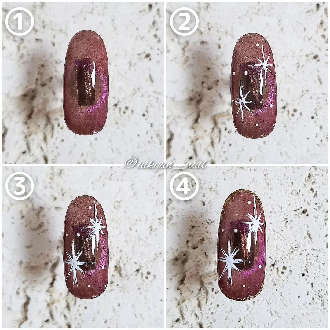 新商品✨WaterMagnetくすみシアーカラー×バイカラーマグネットワンカラーでもよし!マグネットで動かすと不思議な色で動きも良くとってもオススメ🙌一味違ったマグネットが楽しめます💕ーーーーーーーーーーーーーーーーーーーー【01】~【10】各10色 ¥777-全色セット ¥7,000-ーーーーーーーーーーーーーーーーーーーー↑これが半額セール時半額で買えちゃいます💕◉🅷🅾🆆🆃🅾◉・キラキラ・①WaterMagnet【03】を塗布し真ん中を空けるように 磁石を当て硬化しもう一度繰り返す②痛ライナーnowipe【White】で真ん中から上下左右斜めに シャッと線を引きキラキラとランダムに点々を描き硬化③【⑥】NOWIPETOPGELを塗布し硬化④③のぼやけてしまったキラキラの線を付け足し 周りに痛ライナーnowipe【Gold】で囲って硬化したら完成/・月・①クレヨン18を2度塗り②真ん中に痛ライナーnowipe【gray】で⚫を描く③痛ライナーnowipe【Black】【White】【gray】を 少しづつ混ぜた色を何色か作りzeccabrush【Multi】で ひたすらトントントントントントン……硬化! 【⑥】NOWIPETOPGELを塗布し硬化したら完成/■■□――――――――――――――――――――――□■■◉🅸🆃🅴🅼◉❋WaterMagnet ┗【03】❋selfカラージェル ┣【クレヨン01】 ┗【クレヨン18】❋痛ライナーnowipe ┣【Black】 ┣【White】 ┣【gray】 ┗【Gold】❋SheerColor ┗【Angleno.1】❋zeccabrush ┣【Multi】 ┗【ShortLiner】❋GELNAILSYSTEMmini17種類のクリアジェル5㎖ ┗【⑥】NOWIPETOPGEL❋はネイル工房(@nailkoubou)からの提供品、・は私費で購入したネイル工房の商品です■■□――――――――――――――――――□■■今回の記事と使用したアイテムはネイル工房@nailkoubouの提供です。製品情報はネイル工房の商品ページでご確認ください※自爪にアートする場合は必ずベースジェルを塗布してからアートしてくださいいいね、コメント、保存よろしくお願いします🙌❤️質問、要望、やってほしいデザイン…etcお気軽にDMください👍▼▼▼SNS▼▼▼••┈┈┈┈┈┈┈┈┈┈┈┈┈┈┈┈┈┈┈┈┈┈┈┈┈••プロフィールにリンク集貼ってあります☆Twitter:AikyanNailYouTube:aikyannailTikTok:aikyaaan_ネイルチップ販売しています🫶••┈┈┈┈┈┈┈┈┈┈┈┈┈┈┈┈┈┈┈┈┈┈┈┈┈••#ネイル工房#nailkoubou#ネイル工房でなんとかなる#ネイル工房認定アンバサダー#こぼりーず#セルフネイラー#ネイルアート#セルフネイラーさんと繋がりたい#ジェルネイル#ネイル#ジェル#セルフネイルデザイン#naildesigns#セルフネイル#ネイルチップ#ネイルデザイン人気#nail#nails#アート#nailart#art#design#ネイルデザイン#ネイル#マグネット#マグネットジェル#マグネットネイル#月