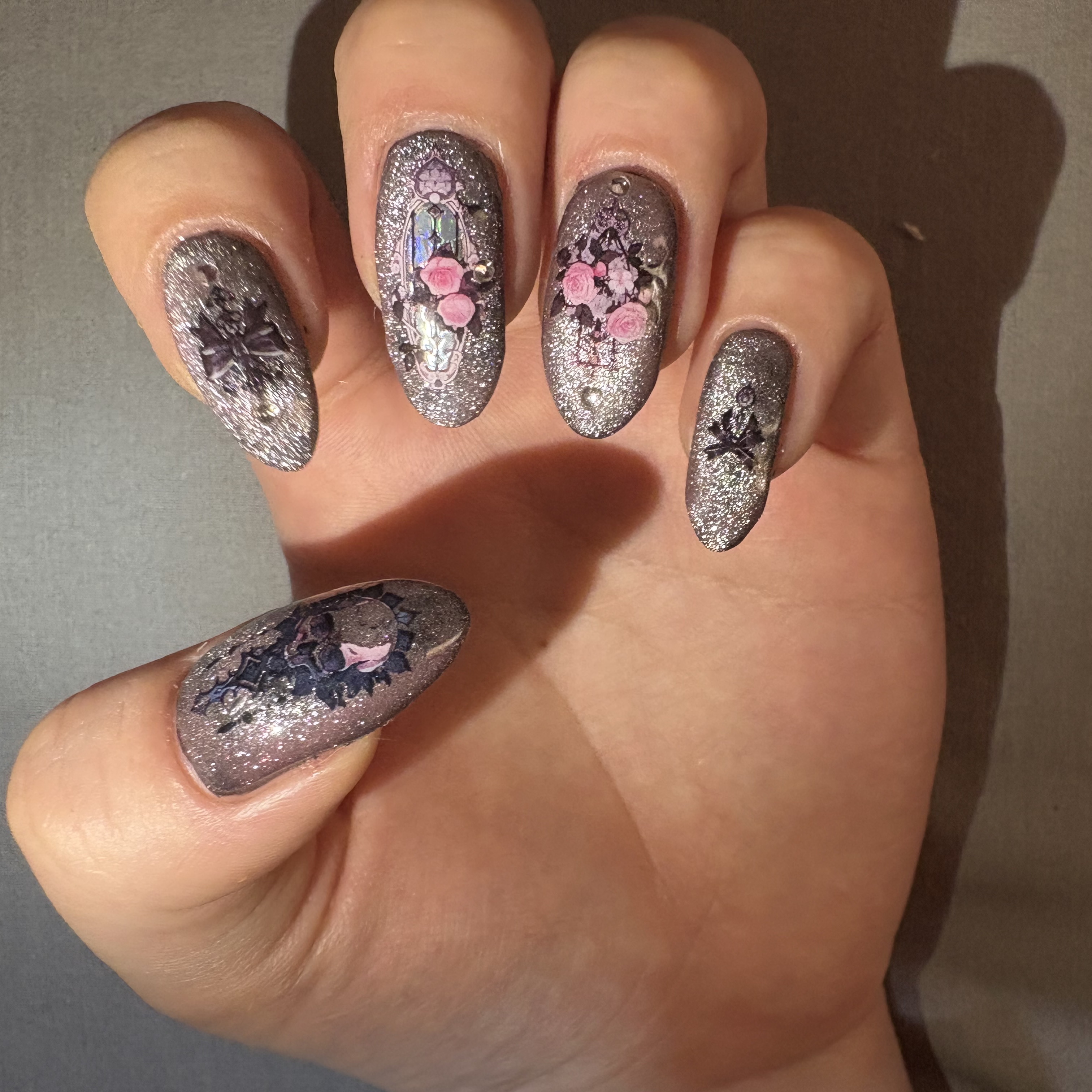 キャンドゥネイルのブラックは1度塗りでもしっかり発色するので、時短になって最高です🫶🏻💕 SHEINのネイルシールも100〜300円くらいで買えて激安すぎ👀 ミラーネイルとか難しくて無理〜というセルフネイラーさんは、このシールぜひチェックして欲しいです🙌🏻🙌🏻