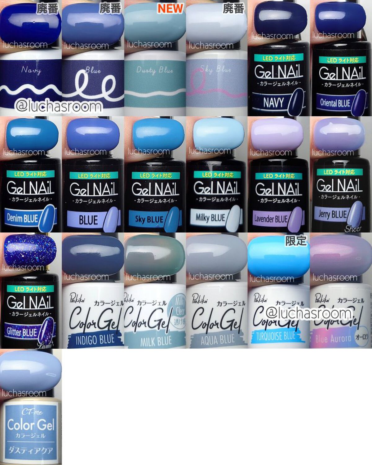 ⚠️⚠️23年2月更新版を投稿しました⚠️⚠️こちらから▶#カラーチャートジェルluchasroomキャンドゥにて販売!パルキコイのパルカラージェル2022.10月現在の全色カラーチャート💅🏻先月の新色と、今月の限定色を追加しました!新色と限...