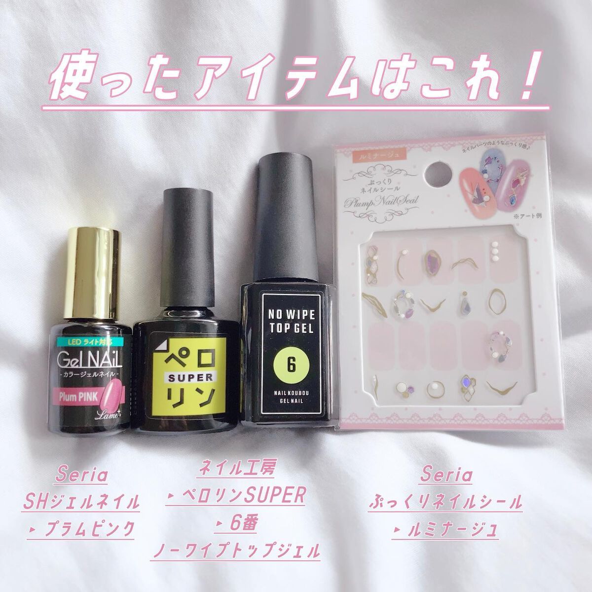 ぷっくりネイルシール▸ ルミナージュ @nailkoubou▸ ペロリンSUPER▸ 6番 ノーワイプトップジェル セルフジェルネイルジェルネイルセルフネイルネイルセリアジェルセリアジェルネイルプラムピンクPlumpinkセリア100均ネイル100均ジェルネイル工房プチプラネイルラメネイル簡単ネイル自爪ネイルネイルシールオフィスネイルショートネイルピンクネイルブルベネイルバレンタインネイル美爪ネイル冬ネイル冬ネイル2023selfnailnail美甲네일아트네일あか抜け宣言