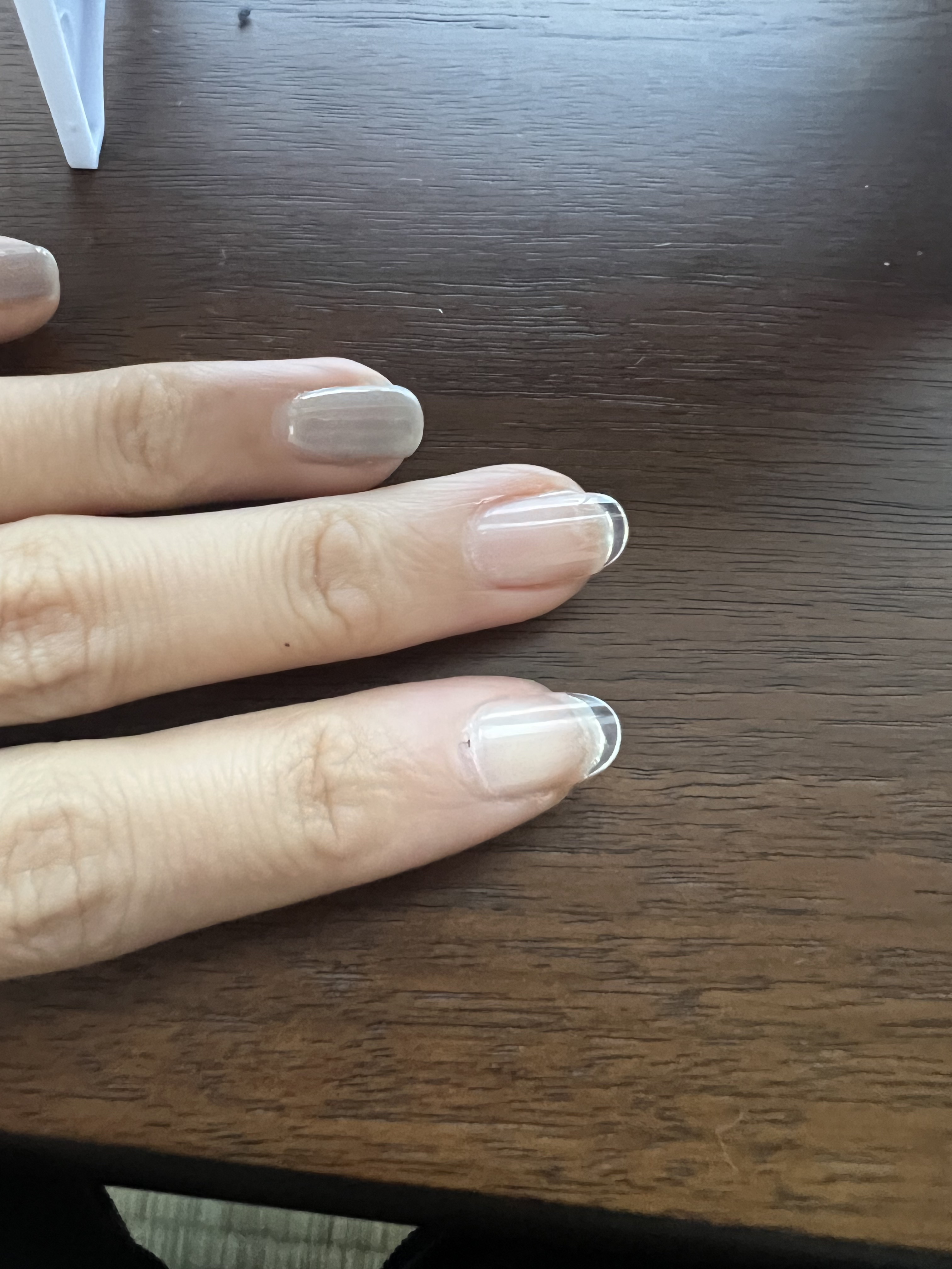 初めてのジェルネイル予算1,000円/爪の亀裂が酷すぎて亀裂対策で購入しましたネイリストさんからしたらツッコミどころ満載で無知すぎる私のネイルを見て悲鳴をあげることが多そうですが目を瞑っていただければ幸いです~商品説明~⚪︎LEDライト330円⚪︎チップ110円⚪︎コットン?110円⚪︎長さ出しジェルネイル110円⚪︎ベースコート110円⚪︎milkybeige110円⚪︎Babypink110円合計990円家にエタノール入り消毒、オイル、プッシャーがあったためこの価格で抑えられました~やり方~⚪︎凄く独学です。インスタのリール動画見まくって詳しく知りたいことはYouTube見てと主にインスタ見ながらしました⚪︎甘皮処理、下準備は特にしてないです。ニッパー怖いのと亀裂が伸びるまでの期間限定なので本格的ではないのでいいかなと、⚪︎ジェルネイルに1分と書いてあるので1分LEDを当てています。ちょうどDAISOのLEDも1分なのでありがたいです⚪︎トップコートはなしです。マネキュアしている時にトップコートしても落ちるスピードは変わらなかったのでジェルネイルでもなしでしています。なくてもチュルチュルで可愛いです⚪︎翌日お風呂後爪先禿げました。なんならハゲて引っかかるのでピンセットで引っ張ったらツルんとのきました~感想~⚪︎亀裂酷かったので長さ出ししてみたら少しの衝撃で外れたのでまだ早かったです。けど凄く楽しくてハマりそうです⚪︎マネキュアと比べて匂いがあまり臭くないのと凄く早く終わります。マネキュアが両手1時間で終わっていたところジェルネイルは40分ぐらいで終わって凄く楽でした⚪︎色の種類も多くてハマりそうです。楽しいし可愛いし本格的にしたいなぁと思っています⚪︎なぜセルフネイルに初挑戦したかというと行きたいサロンがご新規さんストップで行けなかったのでとりあえず爪の真ん中まできてる亀裂どうにかしたくてジェルネイルしました⚪︎翌日お風呂後爪先禿げました。なんならハゲて引っかかるのでピンセットで引っ張ったらツルんとのきました最後に…今回は緊急、低予算、初心者と無知なりに頑張りました。とりあえず亀裂で物に引っかかることなくなって安心です。爪が視界に入るたびに可愛いので幸せです#セルフネイル#ジェルネイル
