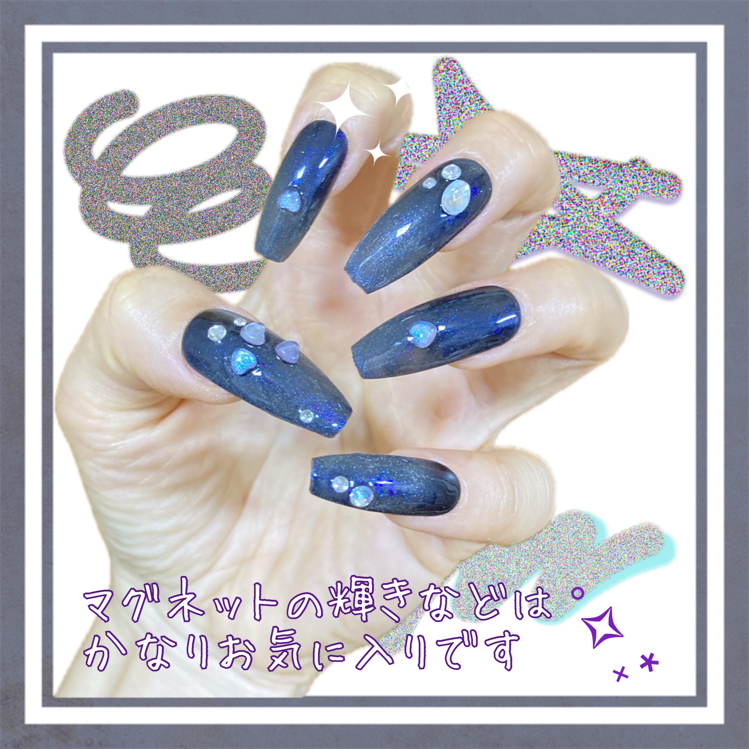 黒ベースのマグネットネイルがしたくて先日購入したキャンドゥのネイルチップで作りましたネイルチップが長すぎました…物を掴むのが難しく、この長さで日常生活を送っている方々を尊敬します(ギャルすごい!)前処理で削ればよかったのですが、落ち着いたら削って調整しなければ…😅↓使用アイテム【セリア】●カラージェル・ブラックYE10193JANコード:4580231101937・ヌーディーコーラルJANコード:4580231107434・ブルーグレーJANコード:4580231115118●マグネットジェルネイル・ミッドナイトパープルYE11693JANコード:4580231116931・シルキーパープルYE11695JANコード:4580231116955◎ネイルパーツラメ入りハート約30個JANコード:4539314531819◎LJネイルシールオーロラジュエルJANコード:4980299063947※私はネイルチップを使っているのでベースコートは省略していますが、自爪にされる時はベースコートを塗ってくださいねトップコートはノンワイプトップコートを使っていますノンワイプではないトップコートを使用される場合は、自爪でもネイルチップでもクリーナーで未硬化ジェルを拭き取ってください#ネイル#ネイルチップ#ジェルネイル#100均#ジェルネイル_百均#seria#セリア#セリアジェルネイル#マグネットネイル#マグネットジェルネイル#y2k#y2kネイル#ギャルネイル#セルフネイル#自作ネイル#ネイルパーツ#ネイルシール