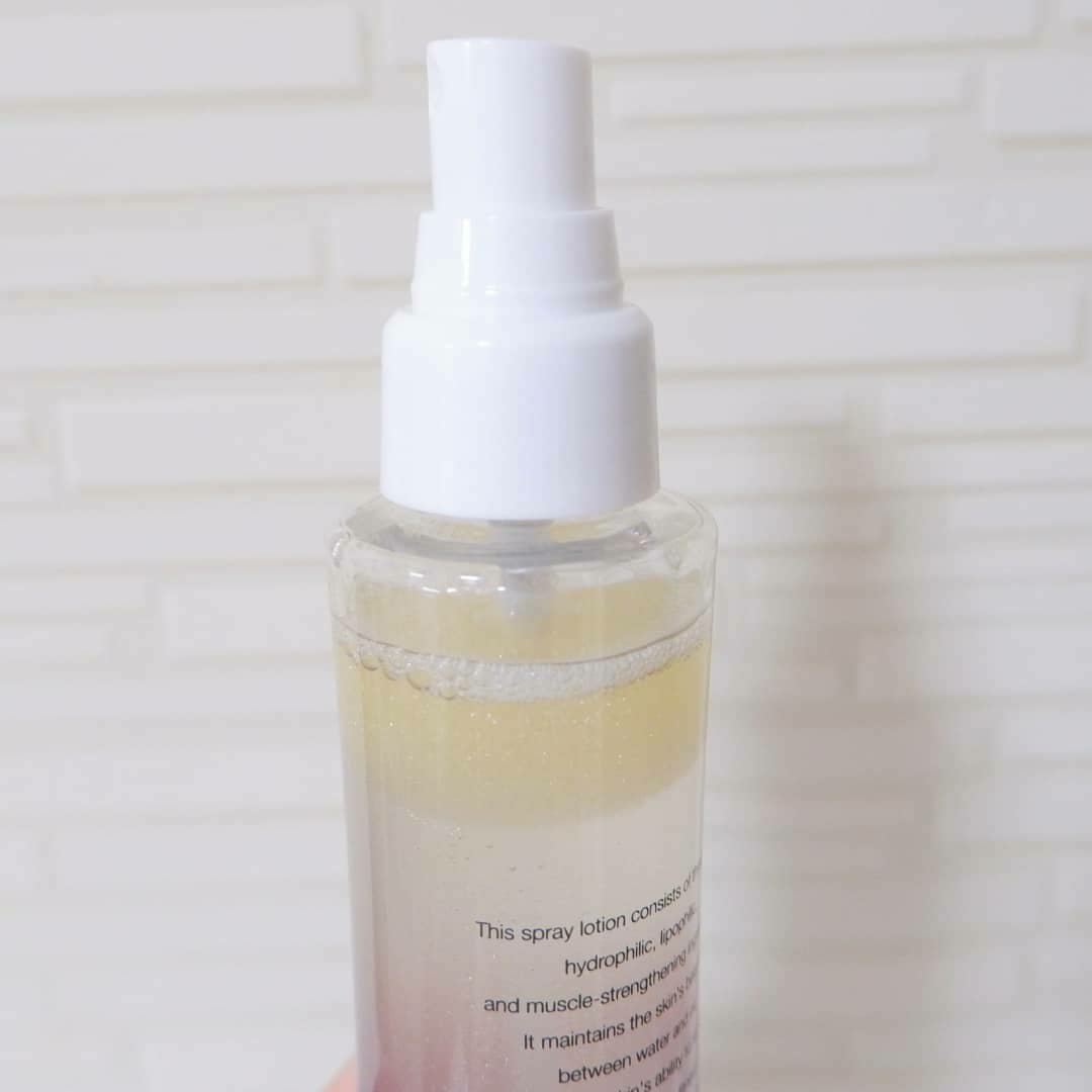 さっぱりしているライトなテクスチャーは、使用するとすぐに肌に浸透して潤いを与えてくれます✨ つるつるの肌に仕上げてくれるので、肌がベタつかず、お化粧前に使ってもメイクヨレが起きなかったですよ♪ テクスチャーの記憶形状技術により、振って混ぜてもオイル層から肌に浸透していくので、オイルのブースター効果がきちんと感じられます。