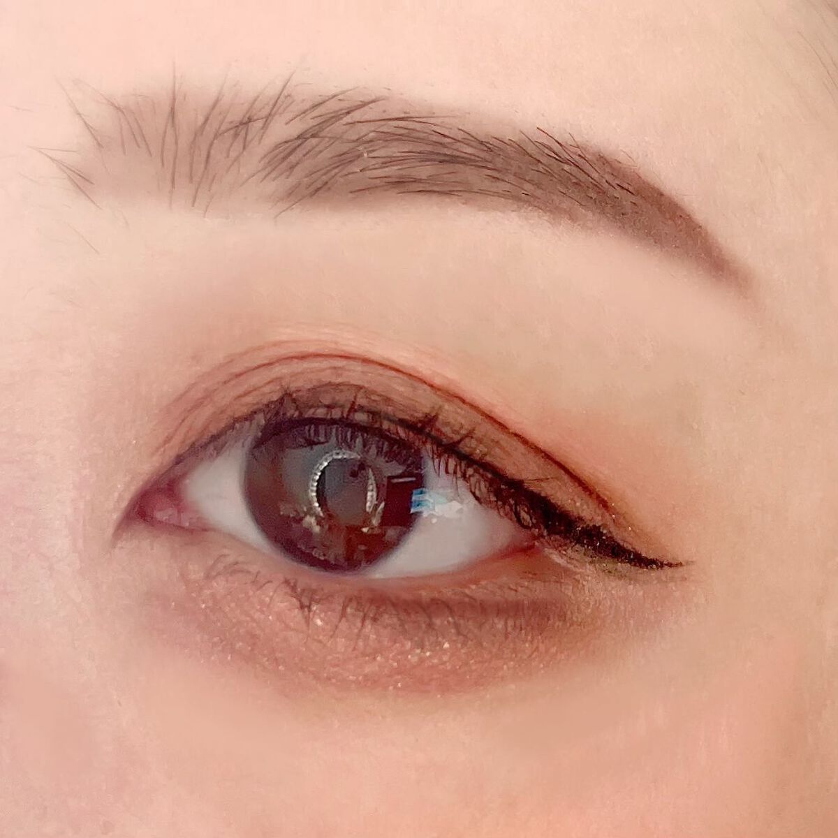 メタリックデザインがスタイリッシュなアイライナー✨ 💛涙・汗・皮脂に強いウォータープルーフ🙆♀️ 💛0.01mmの極細ペン先 💛するんと滑らかに筆が進むから描きやすい 💛速乾で擦れにも強い ペンは5角形になってて、すっごく持ちやすい🙌 滑るように細いラインも綺麗に描けるよ💓 モカブラウンを使ってメイクしてみたんだけど、目尻の跳ねも上手くいった🥰