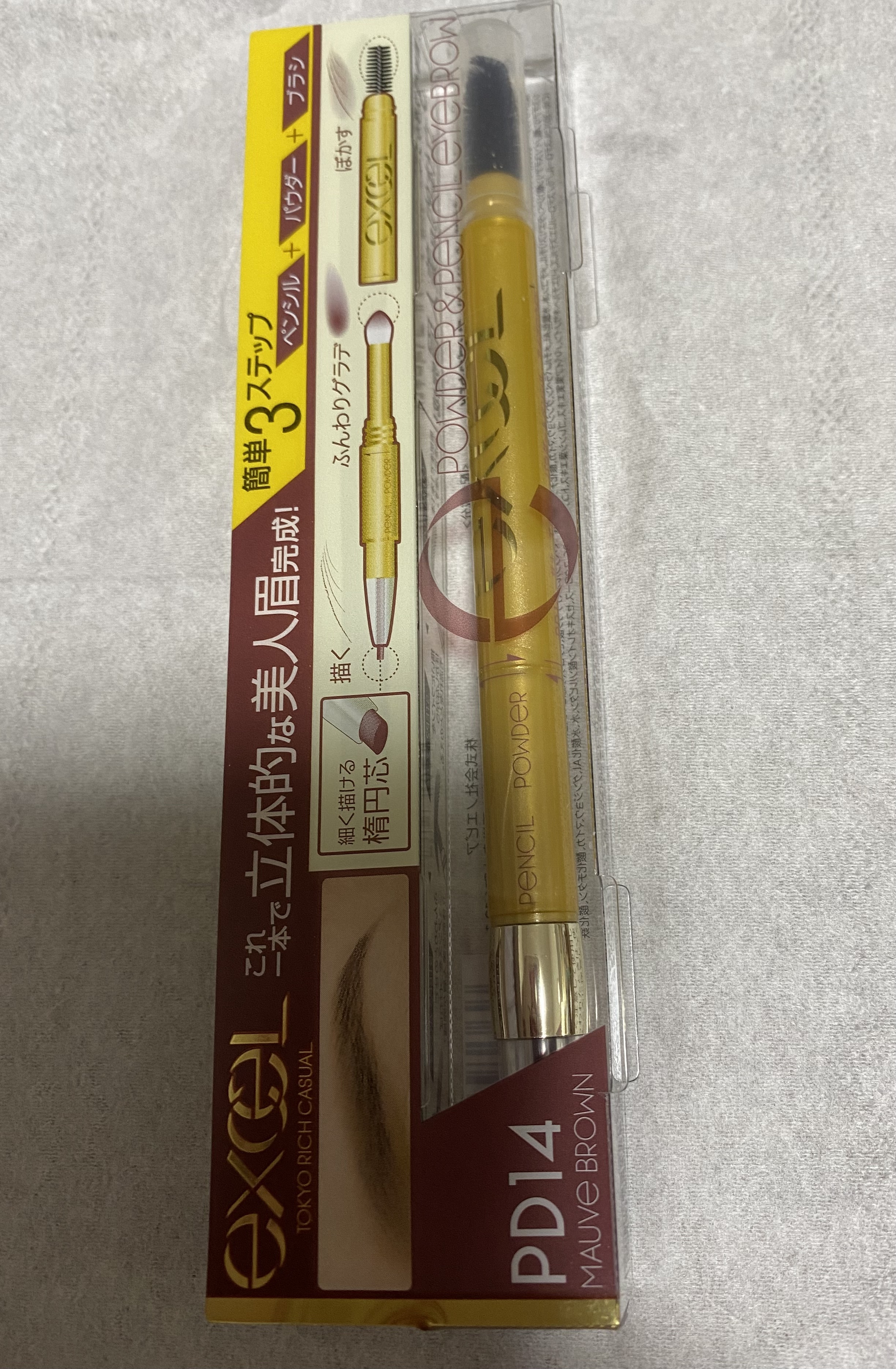 excelパウダー&ペンシル アイブロウEXパウダー&ペンシル アイブロウEXPD14 モーブブラウンアイブロウは、パウダーも持っていますが、やはり、こちらは使いやすいです。パウダーで描いてぼかして、眉尻だけペンシルで描いてます色もいいですね